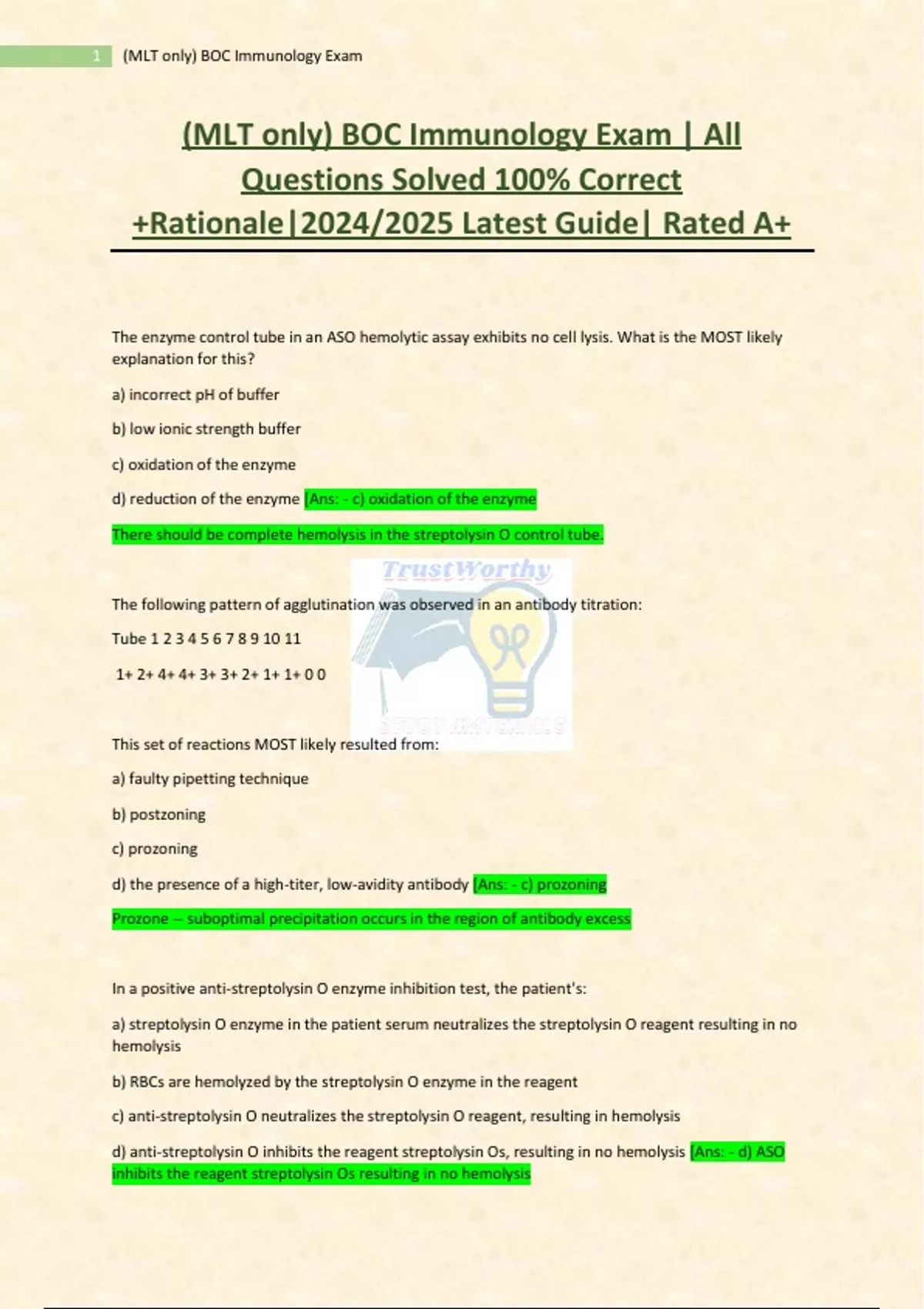 (MLT only) BOC Immunology Exam | All Questions Solved 100% Correct +Rationale|2024/2025 Latest Guide| Rated A+
