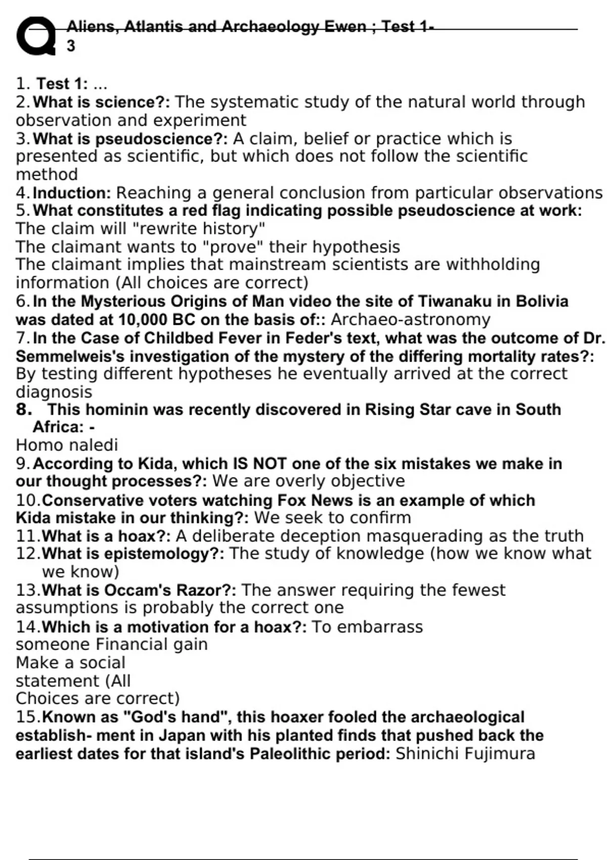 Aliens, Atlantis and Archaeology Ewen ; Test 1-3 Latest 2023 with complete solution