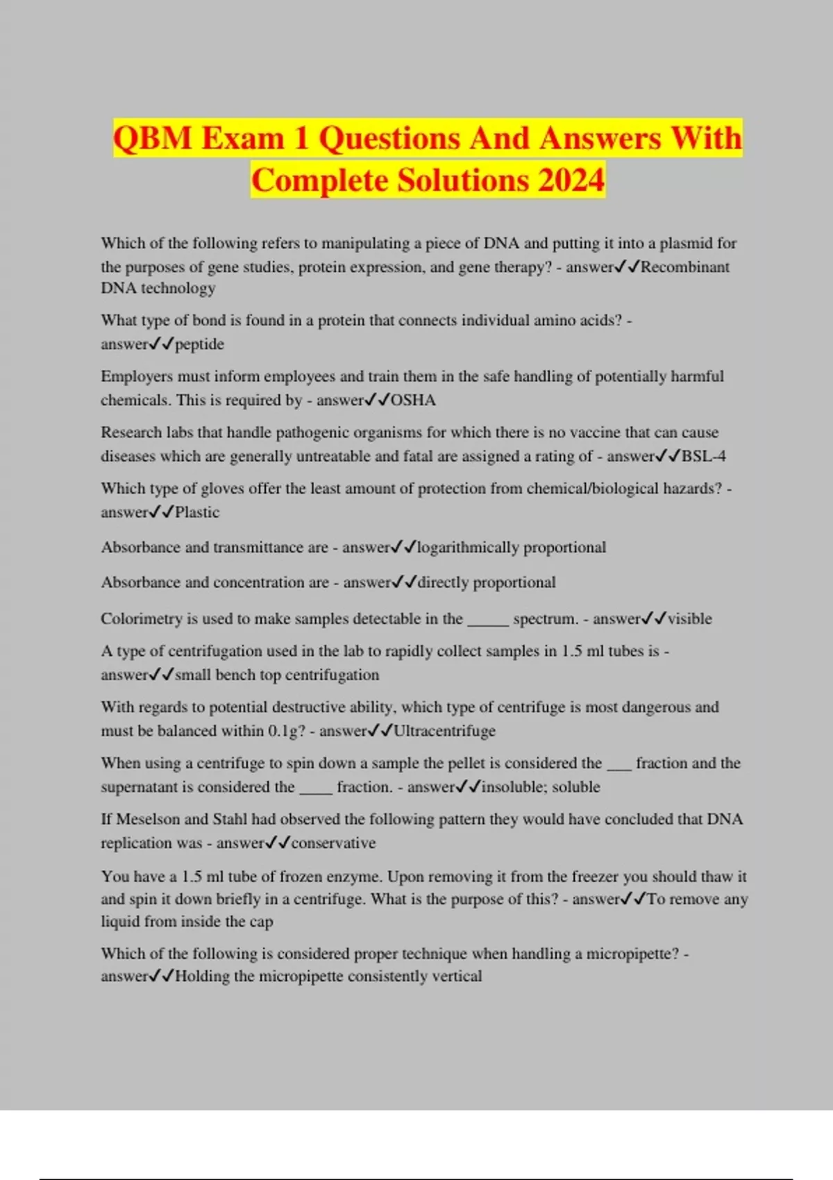 QBM Exam 1 Questions And Answers With Complete Solutions 2024