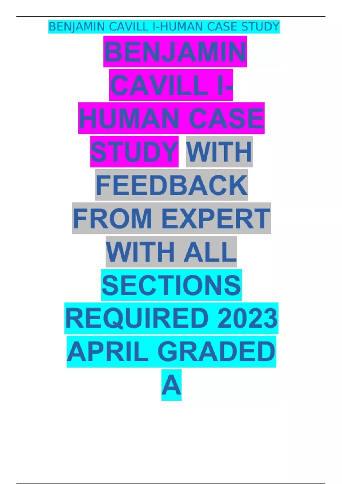 BENJAMIN CAVILL I-HUMAN CASE STUDY BENJAMIN CAVILL I- HUMAN CASE STUDY WITH FEEDBACK FROM EXPERT WITH ALL SECTIONS REQUIRED 2023 APRIL GRADED A BENJAMIN CAVILL I-HUMAN CASE STUDY BENJAMIN CAVILL I-HUMAN CASE STUDY