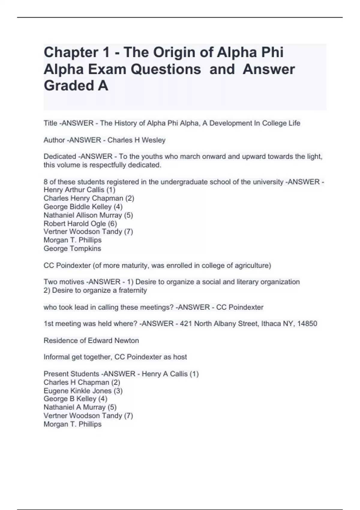 Chapter 1 - The Origin of Alpha Phi Alpha Exam Questions and Answer Graded A