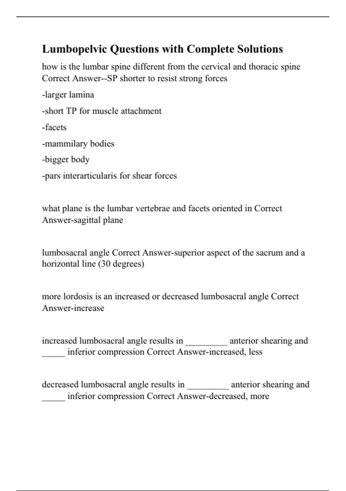 lumbopelvic questions with complete solutions