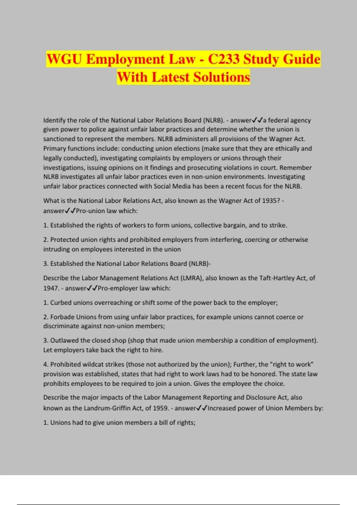 WGU Employment Law - C233 Study Guide With Latest Solutions