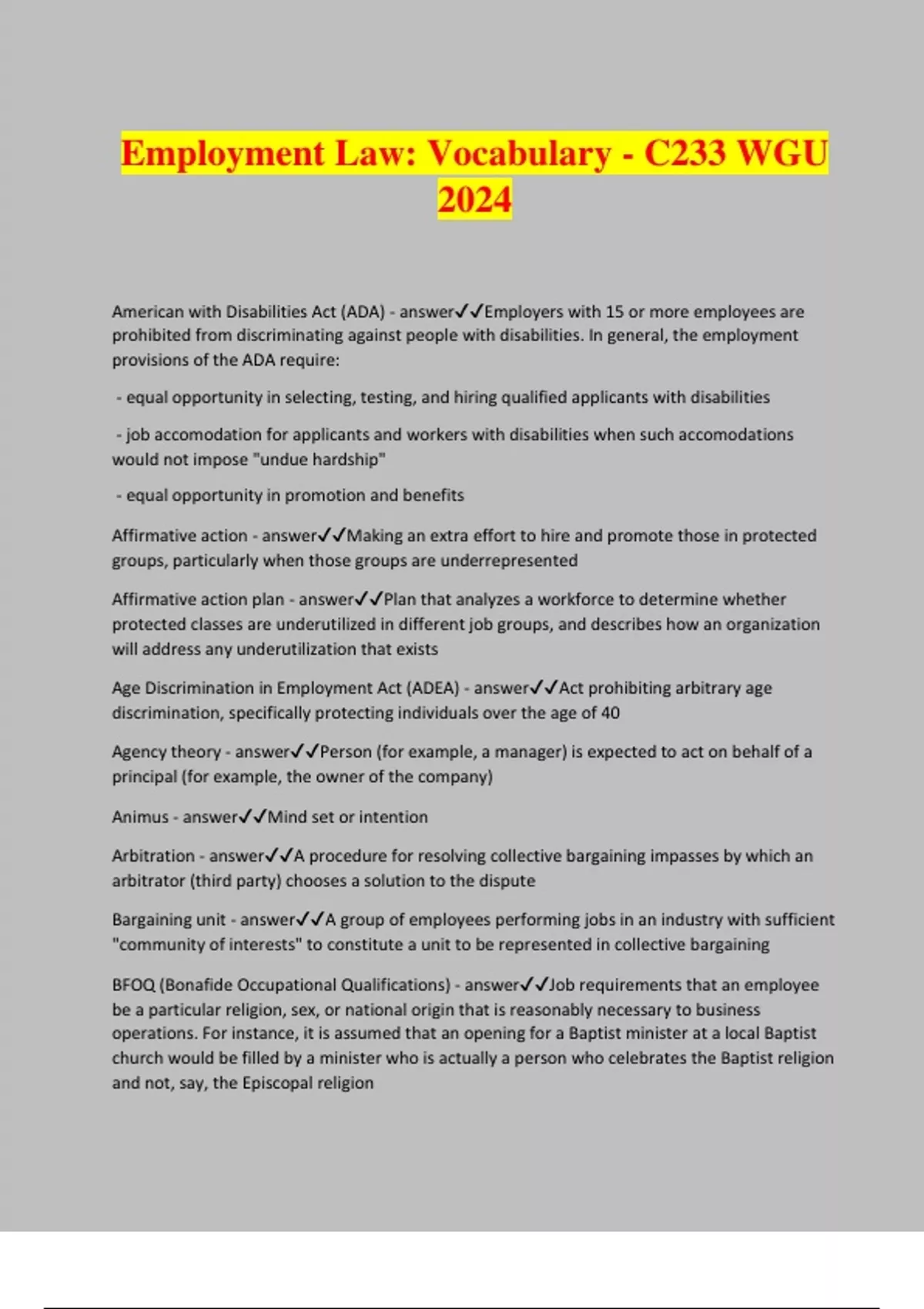 employment law vocabulary c233 wgu 2024