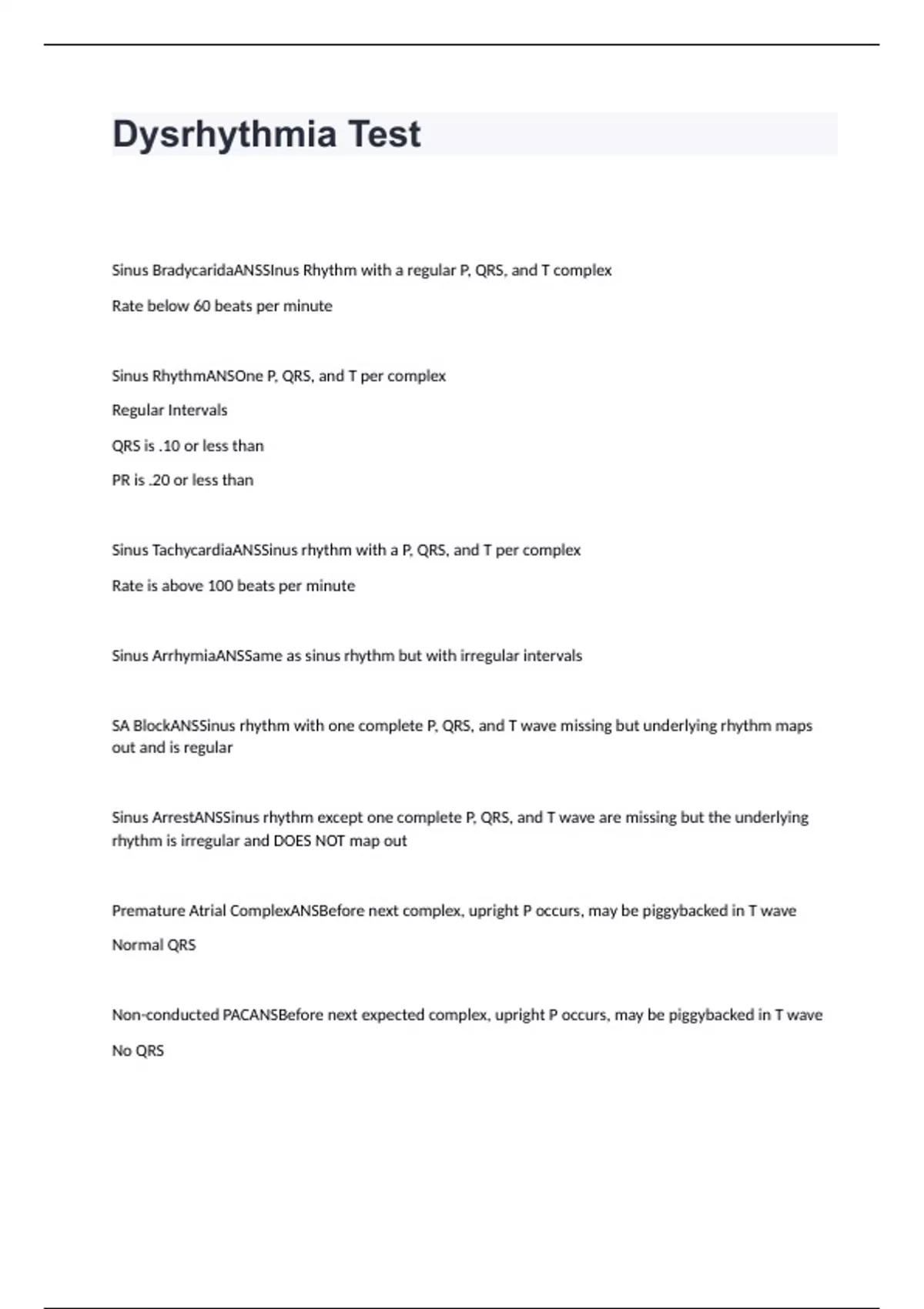 Dysrhythmia Test Questions and Answers 2024 Latest Edition