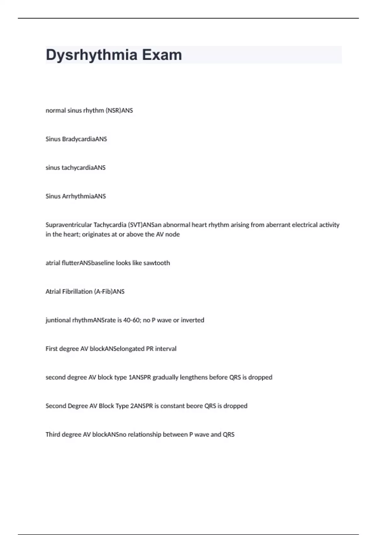 Dysrhythmia Exam Questions and Answers 2024