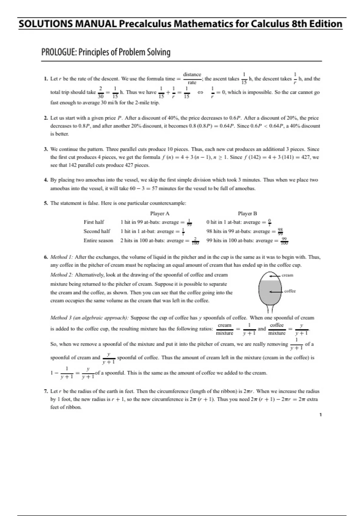 SOLUTIONS MANUAL Precalculus Mathematics for Calculus 8th Edition