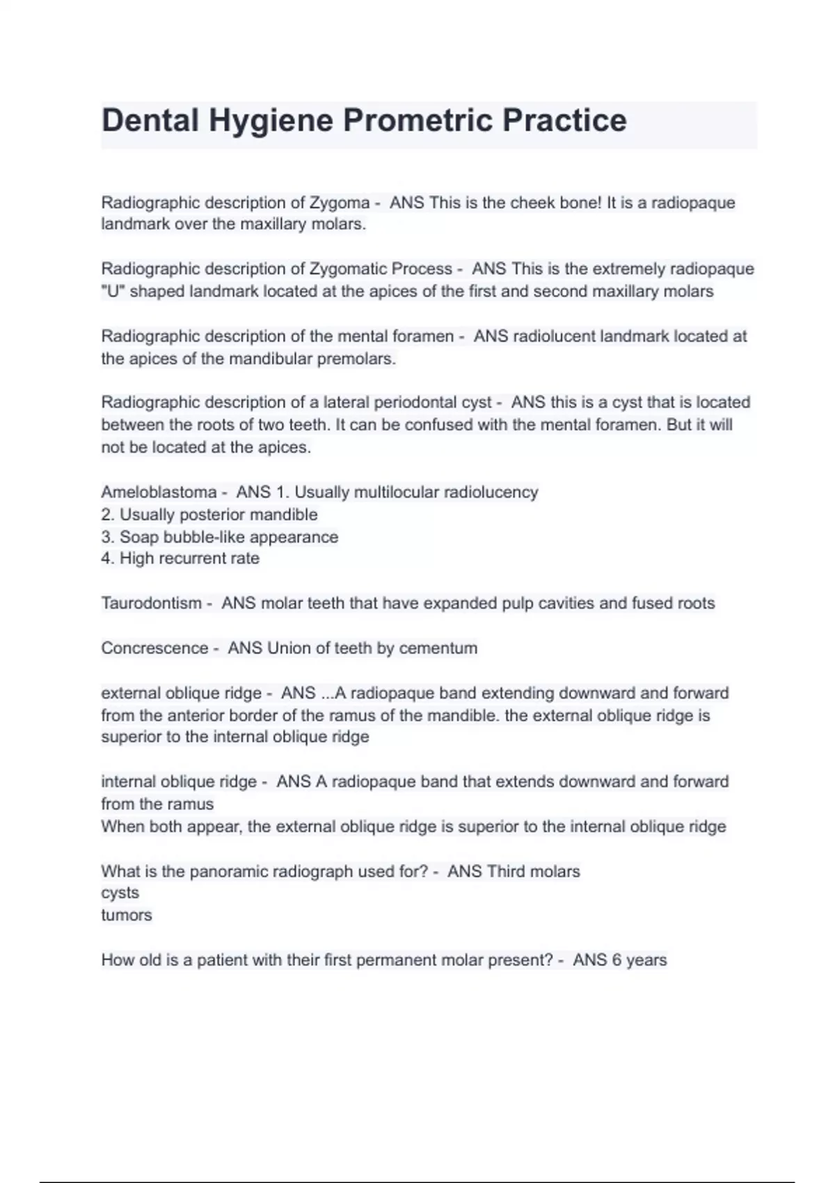 dental hygiene prometric exam with correct questi