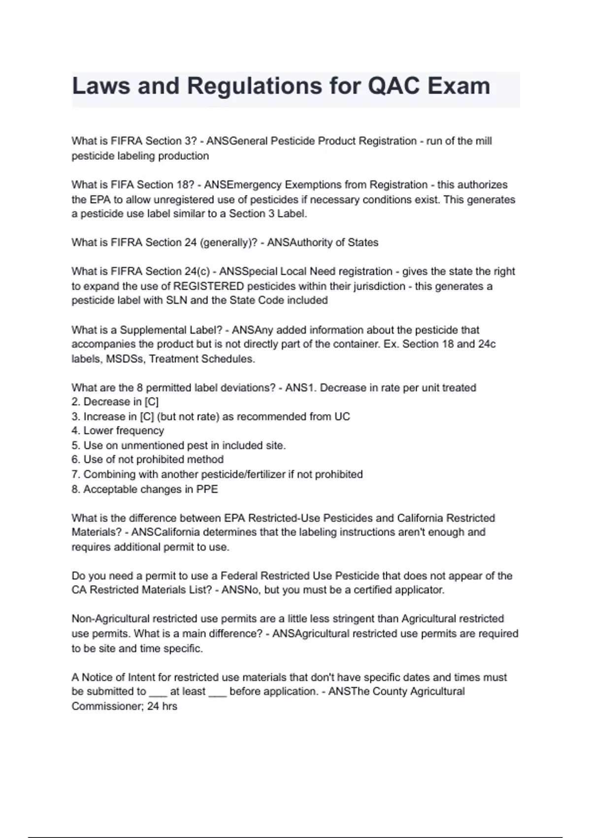 Laws and Regulations for QAC Exam 2024/2025 (100% verified) A+ score assured