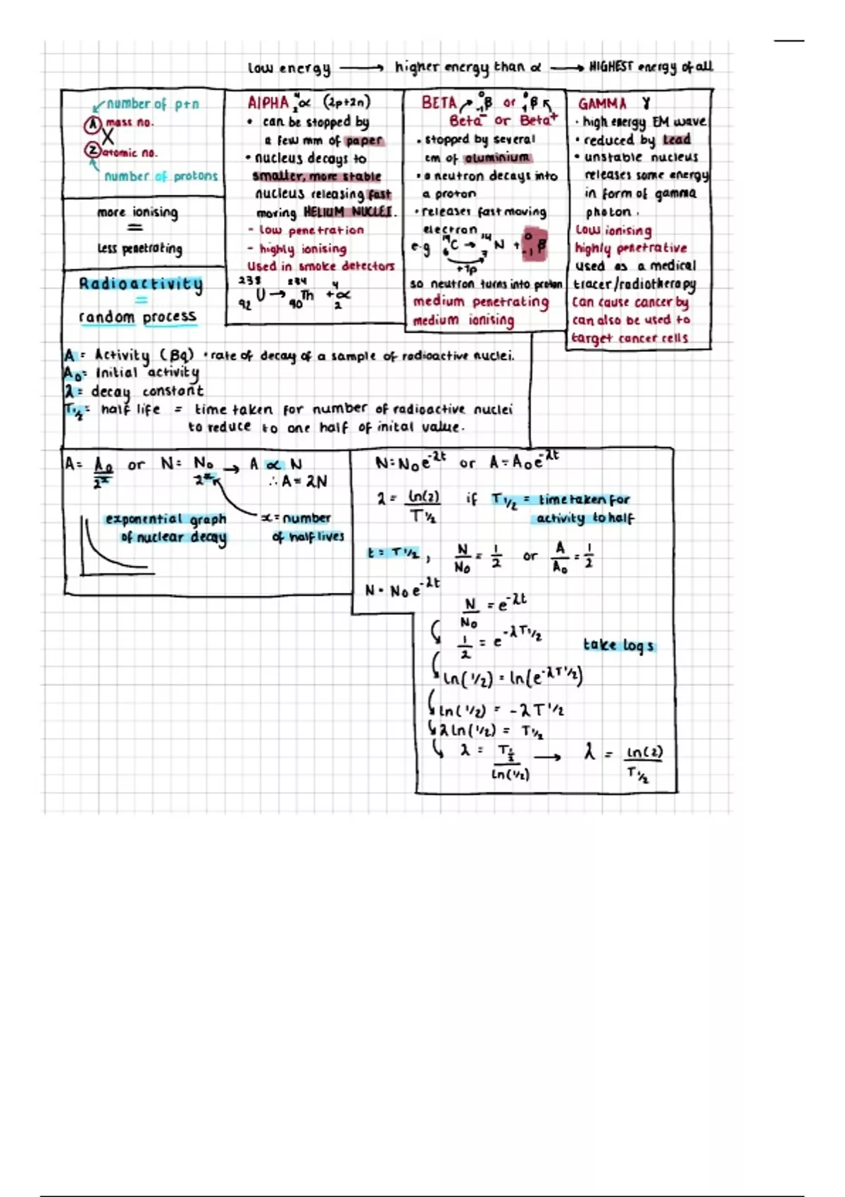 less penetrating - highly ionising e.g:c → IN +9, β highly penetrative