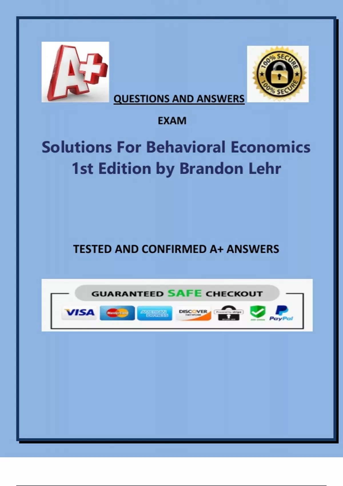 Solutions For Behavioral Economics 1st Edition by Brandon Lehr