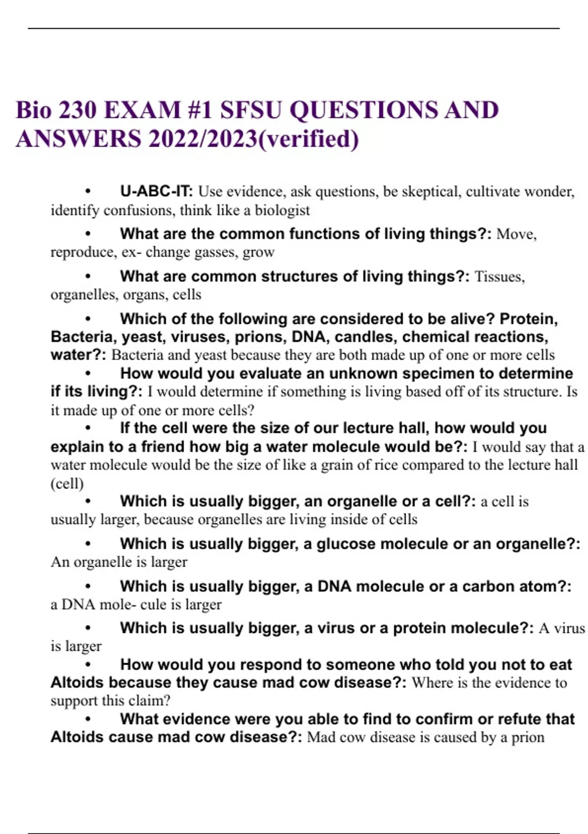 bio 230 exam 1 questions and answers graded a 1