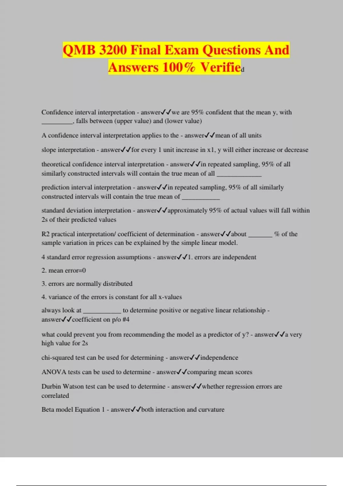 QMB 3200 Final Exam Questions And Answers 100% Verified