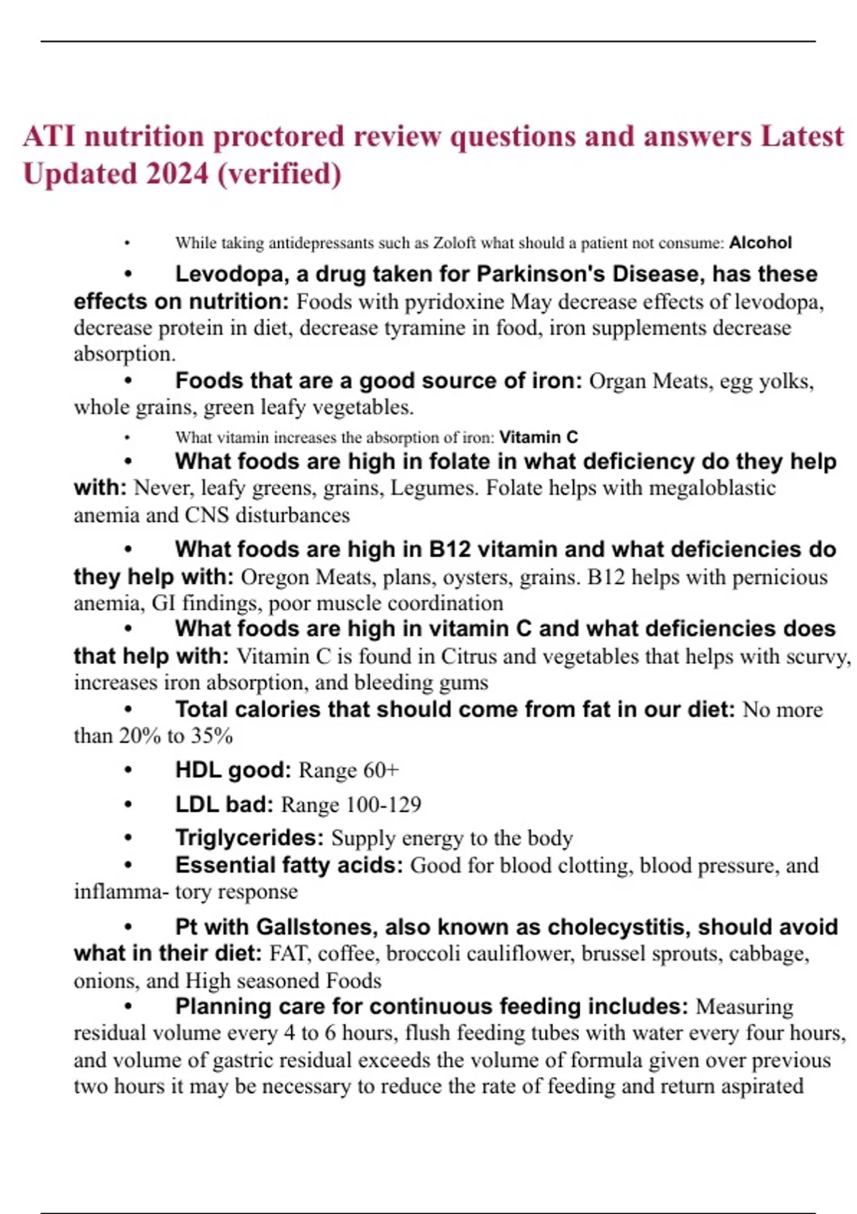 ATI NUTRITION PROCTORED REVIEW QUESTIONS AND ANSWERS 2024