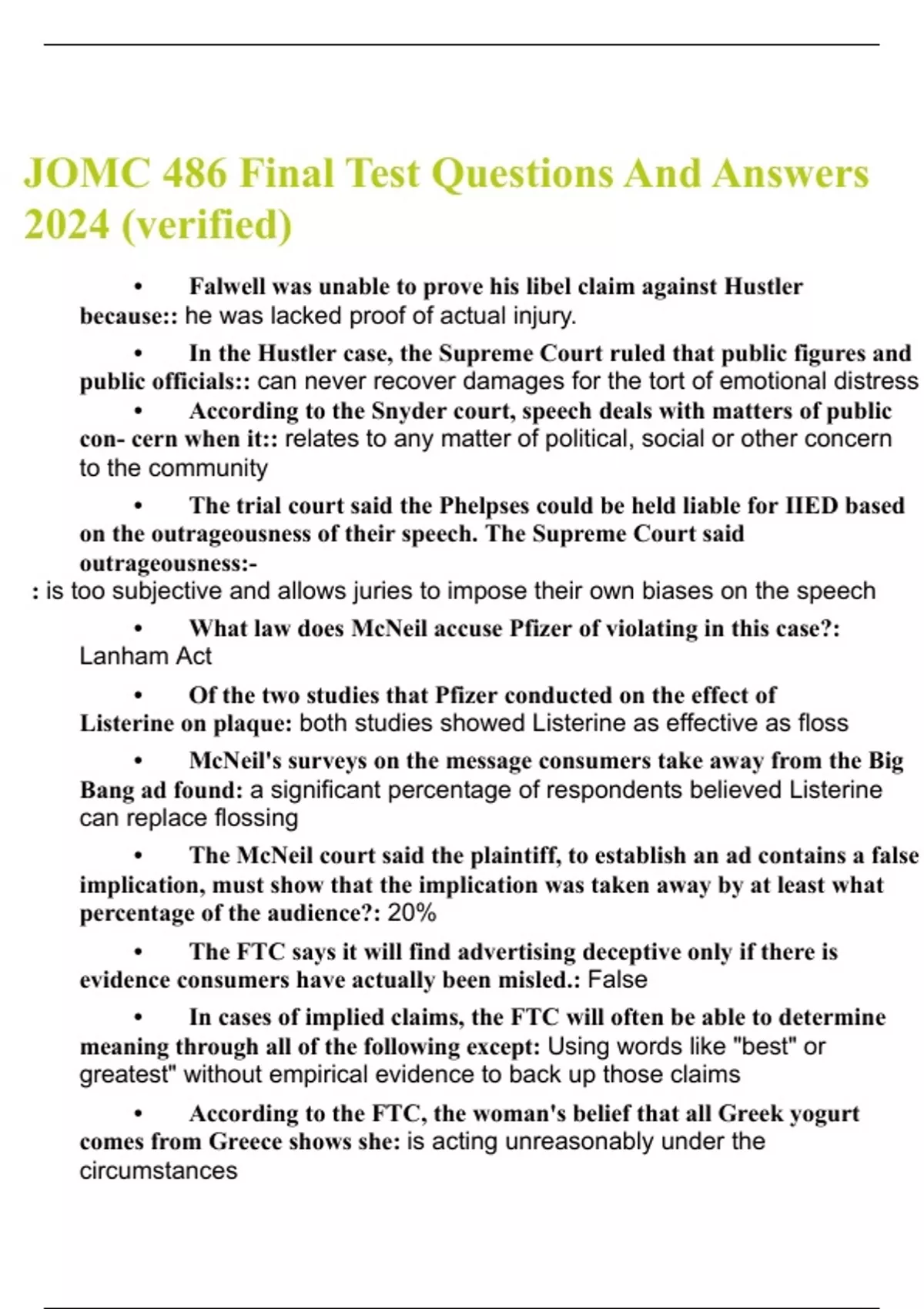 JOMC 486 Final Test 2024 with 100% Correct Answers