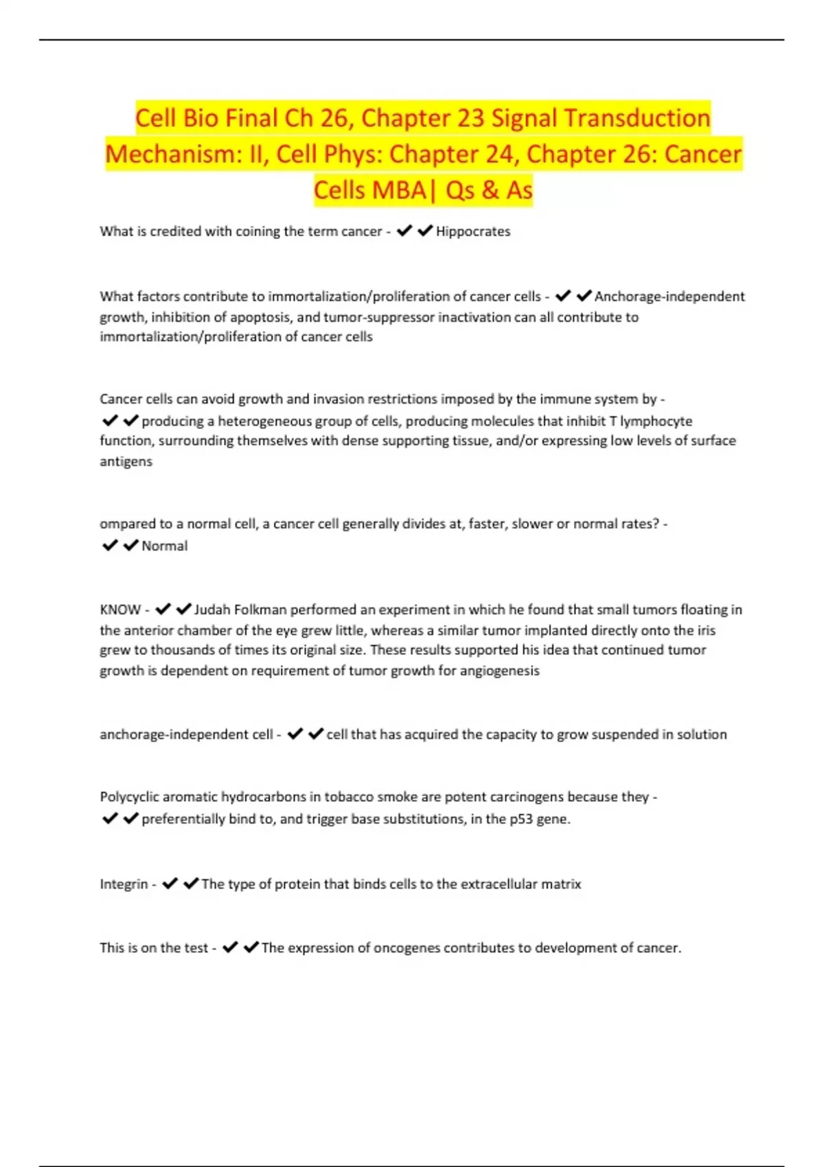 Cell Signaling, Cell Cycle and Mitosis, Cancer, Meiosis and Sexual Reproduction, Genetics| Qs & As