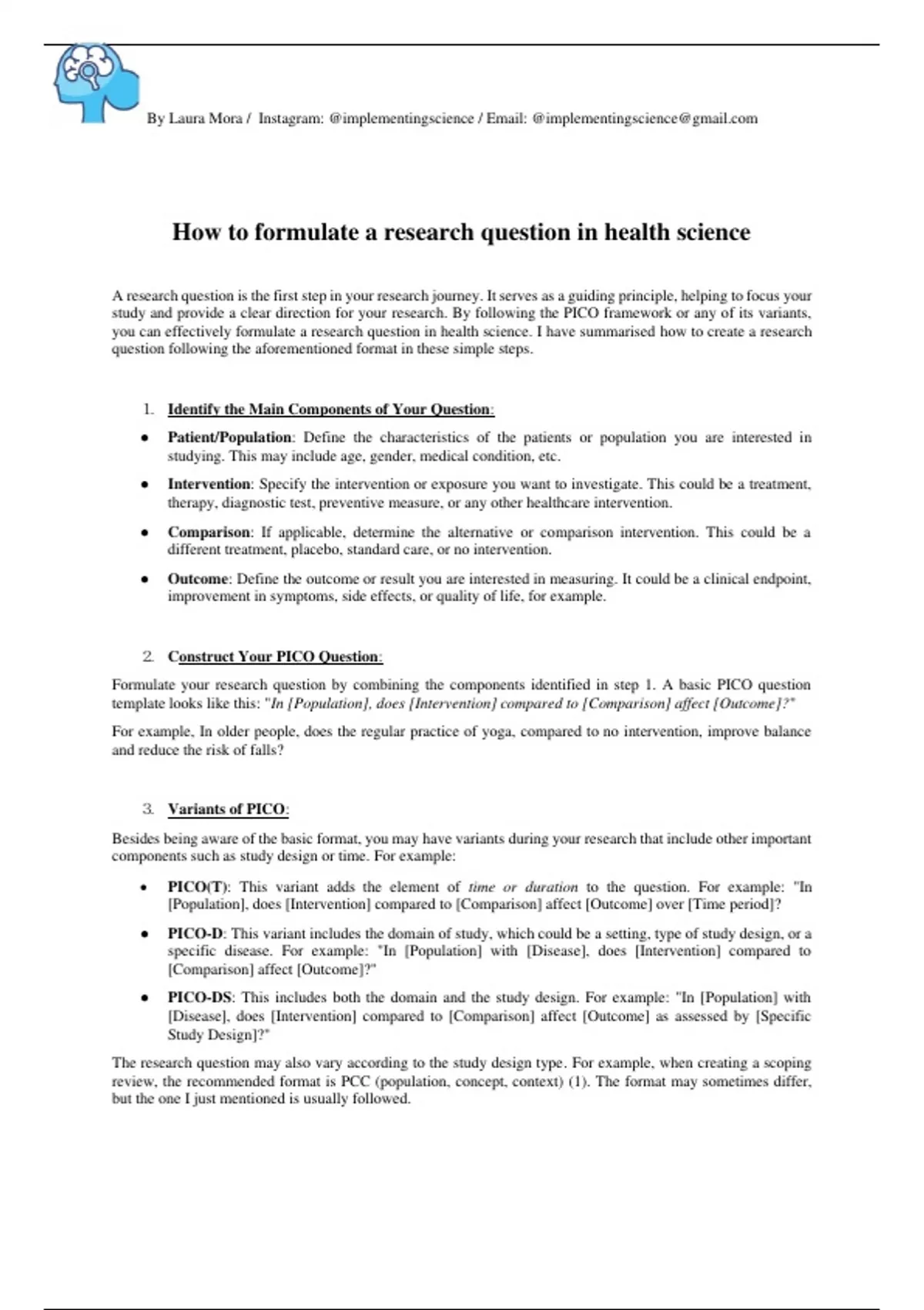 study and provide a clear direction for your research. By following the PICO framework or any of its variants,
