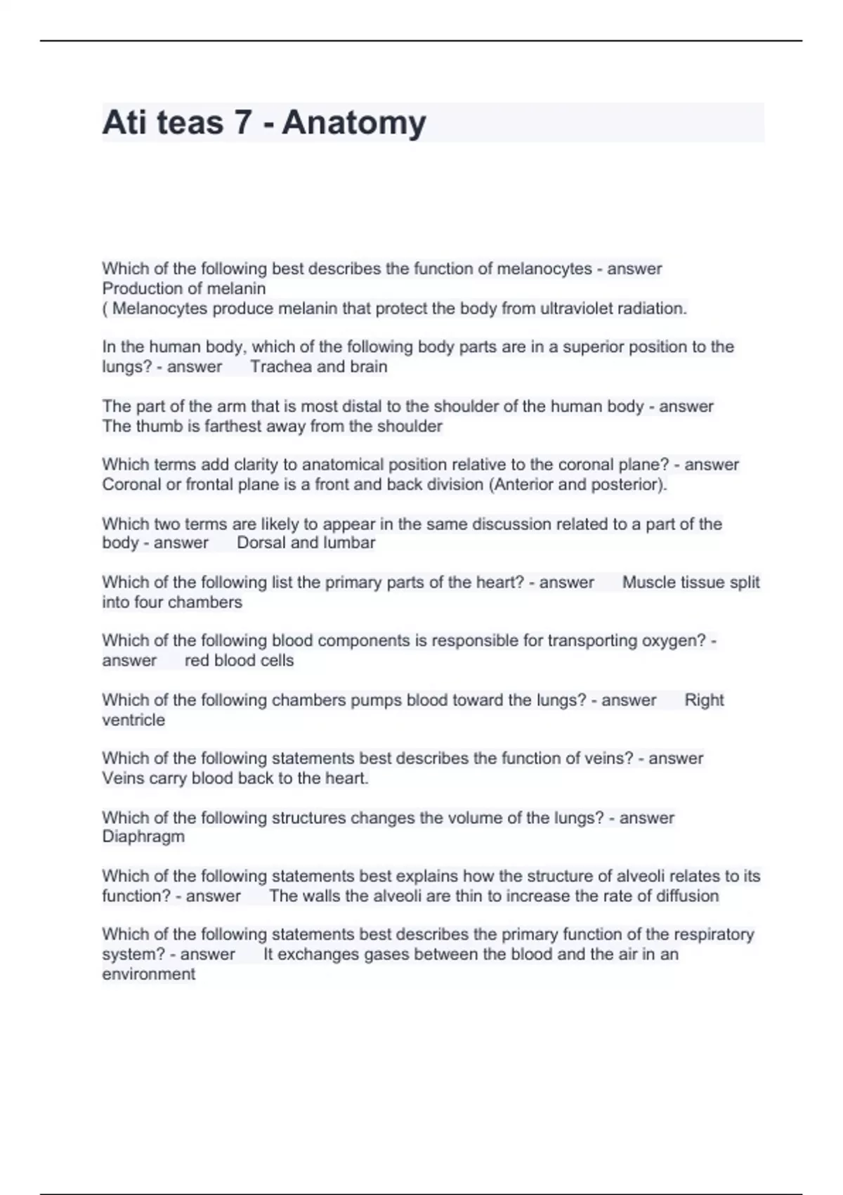 Ati teas 7 - Anatomy Questions and Answers 100% correct