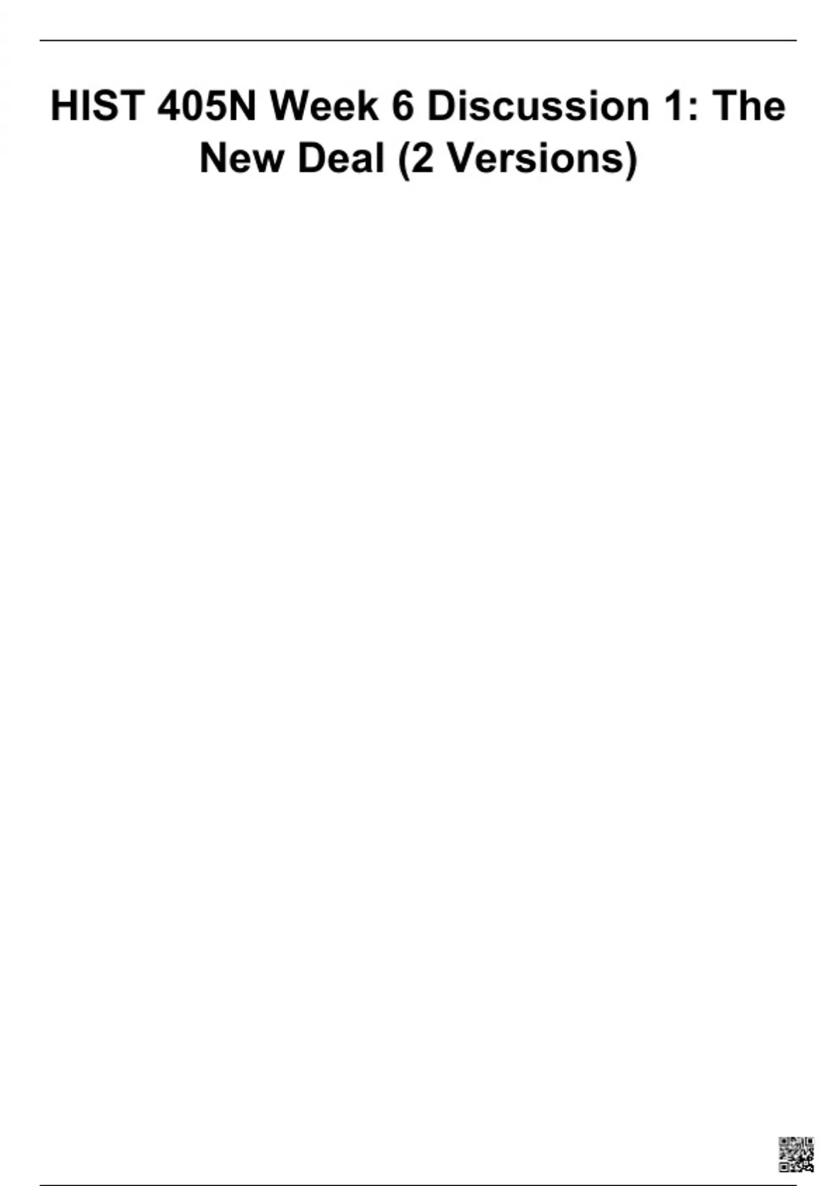 HIST 405N Week 6 Discussion 1: The New Deal (2 Versions)