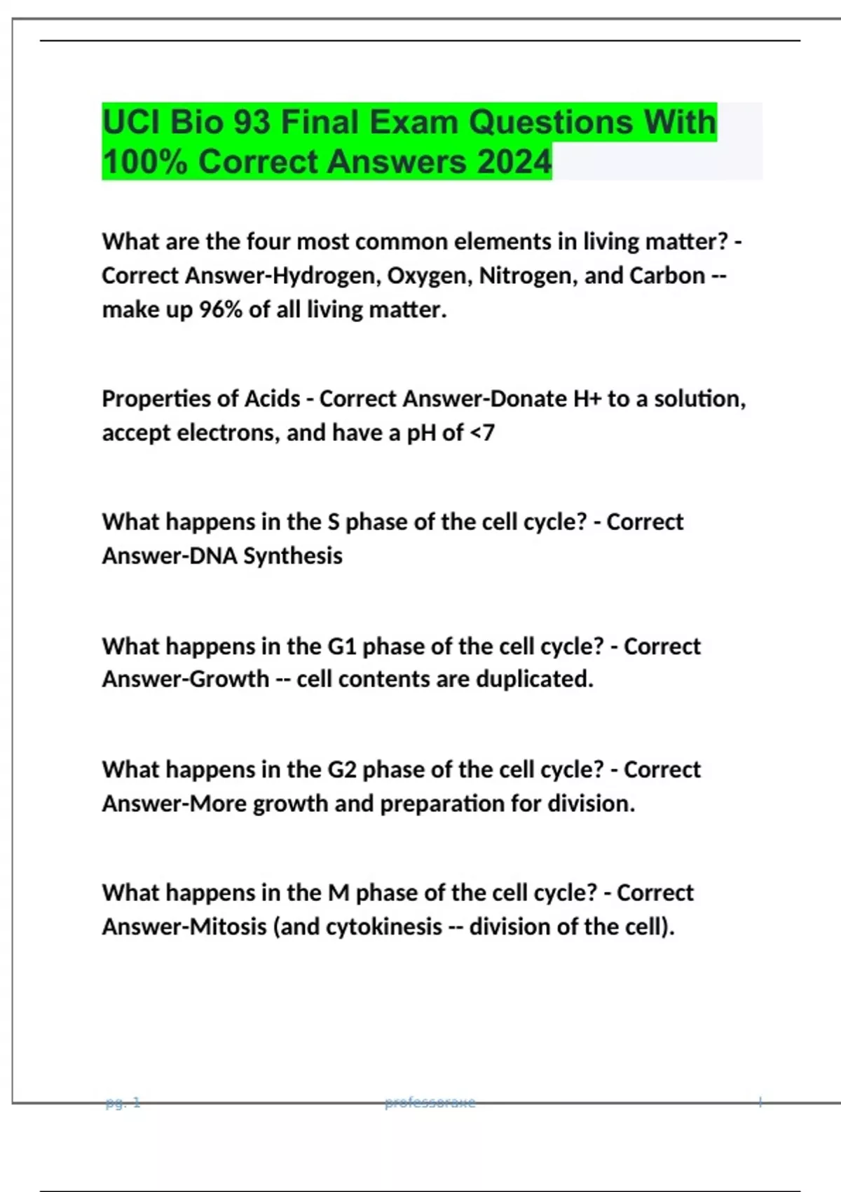 UCI Bio 93 Final Exam Questions With 100% Correct Answers 2024
