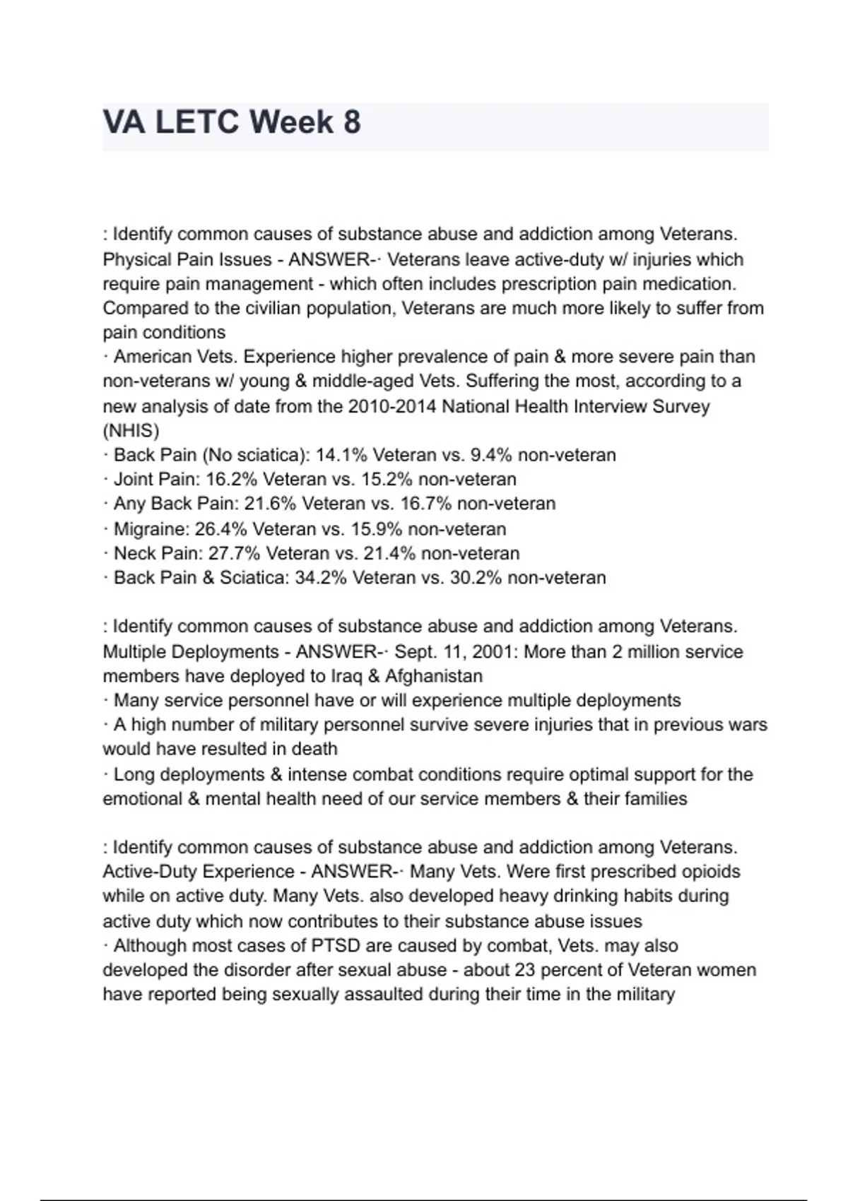 VA LETC Week 8 Questions with 100% Correct Answers | Verified | Updated 2024