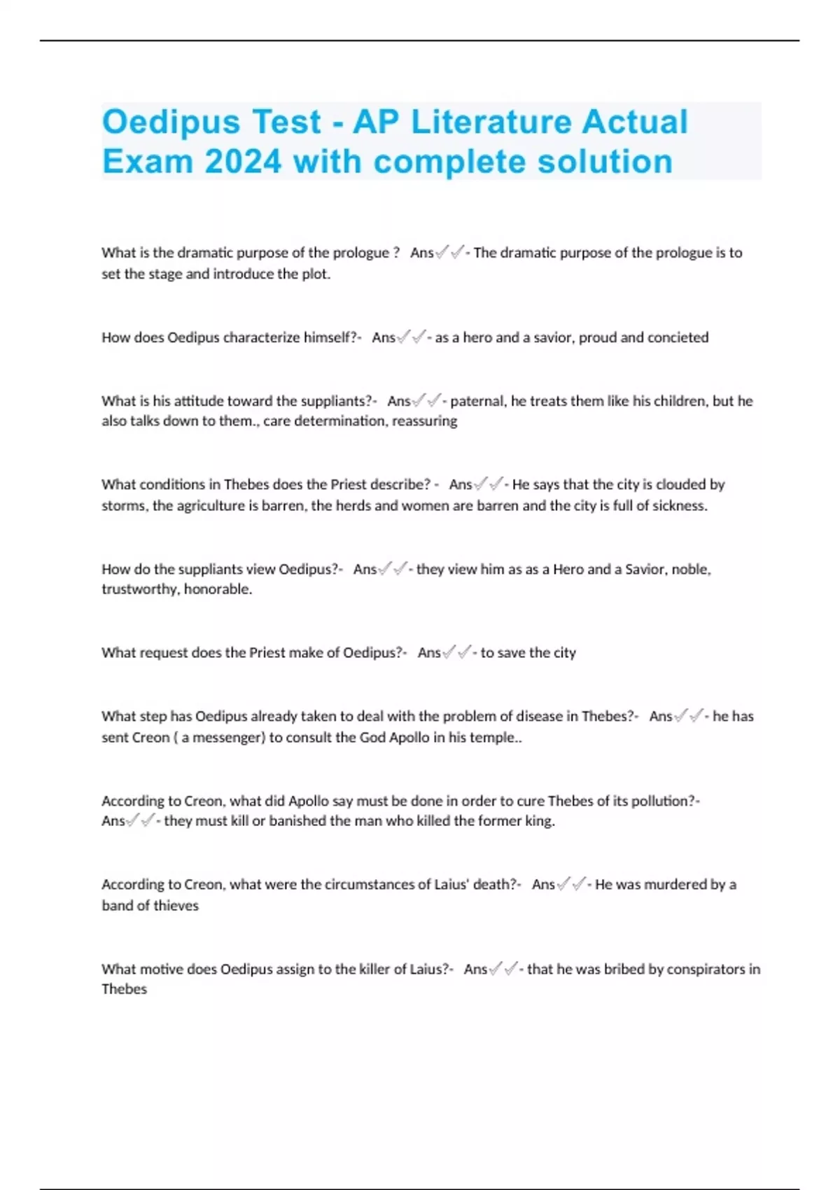 Oedipus Test - AP Literature Actual Exam 2024 with complete solution