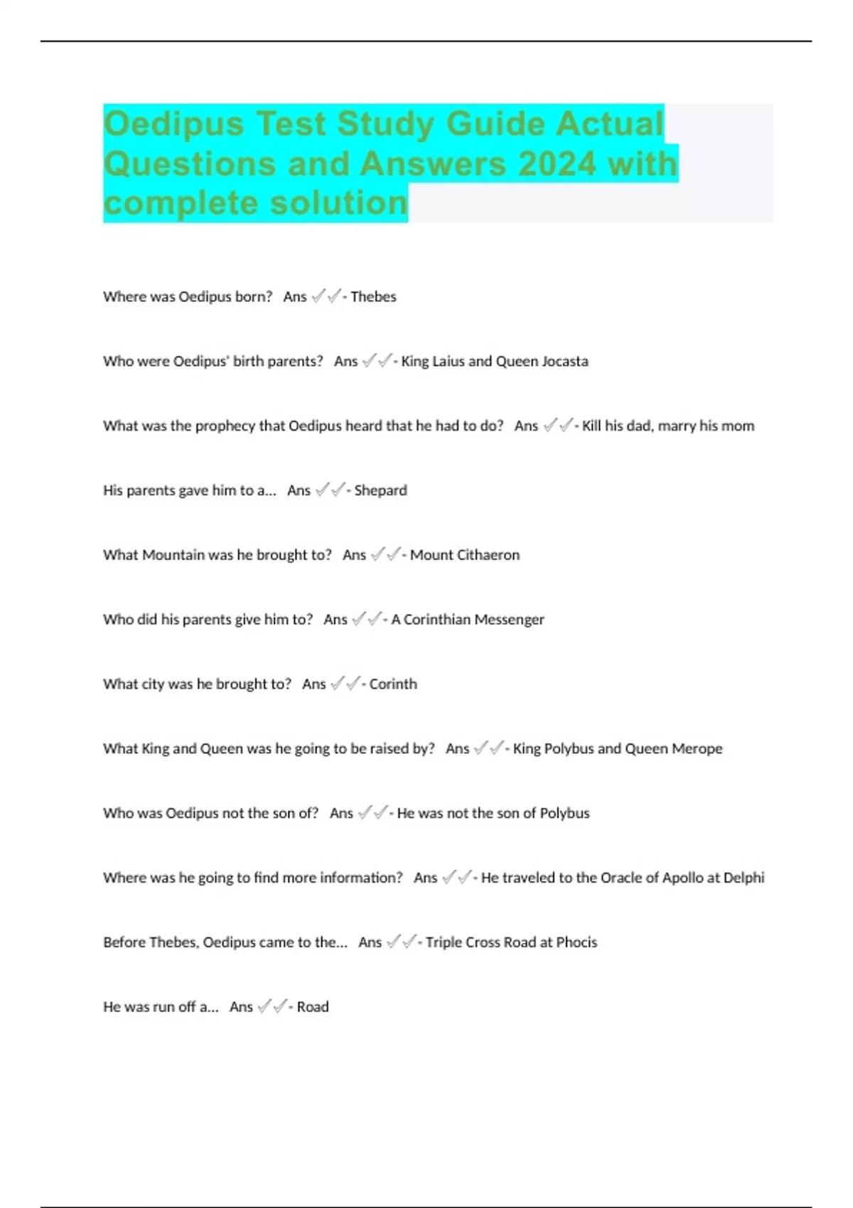 Oedipus Test Study Guide Actual Questions and Answers 2024 with complete solution