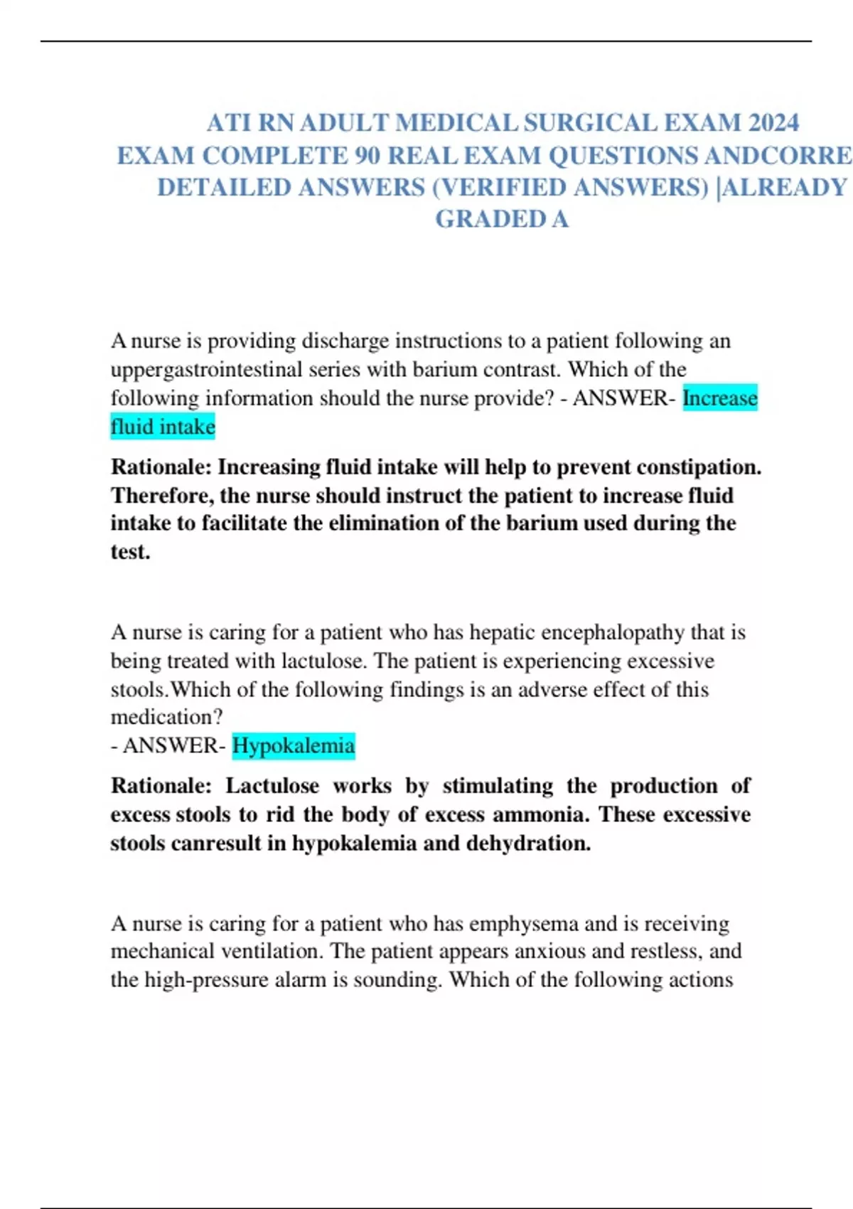 ATI RN ADULT MEDICAL SURGICAL EXAM 2024 EXAM COMPLETE 90 REAL EXAM QUESTIONS AND CORRECT DETAILED ANSWERS (VERIFIED ANSWERS) |ALREADY GRADED A