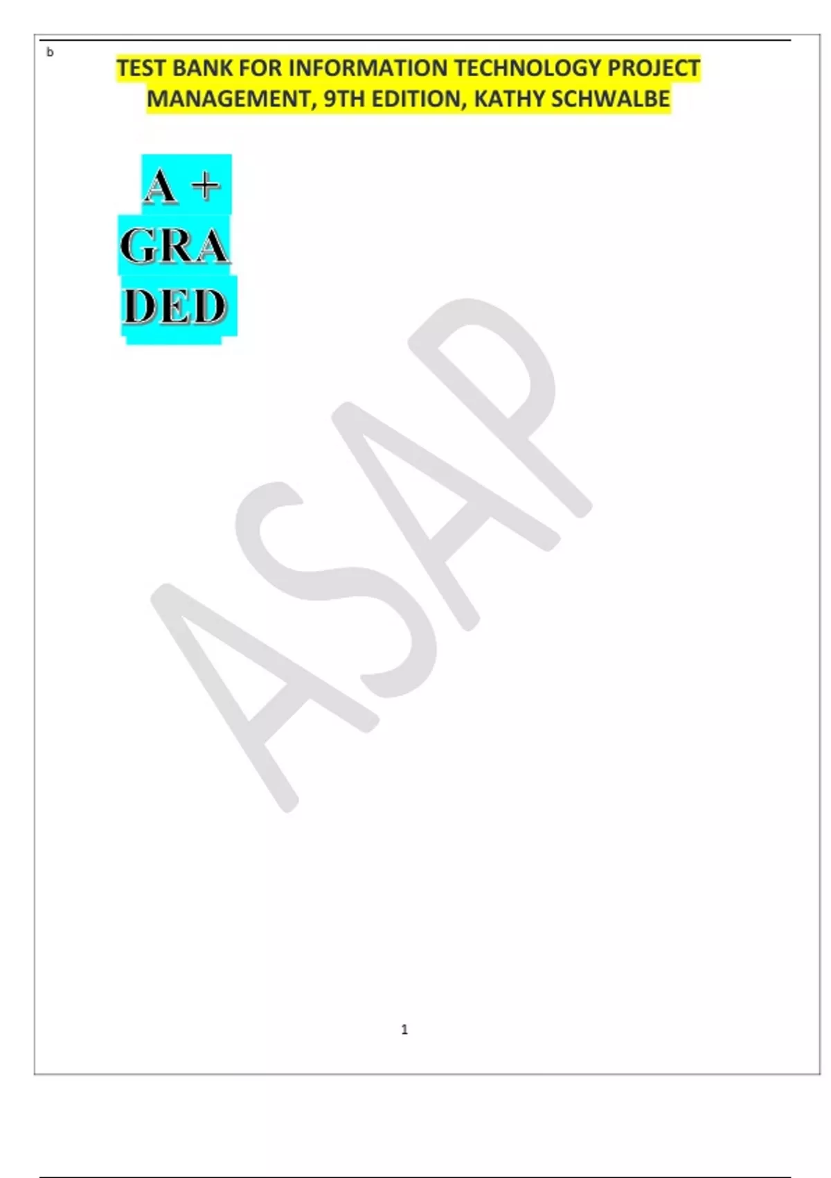 Test Bank For Information Technology Project Management, 9th Edition, Kathy Schwalbe
