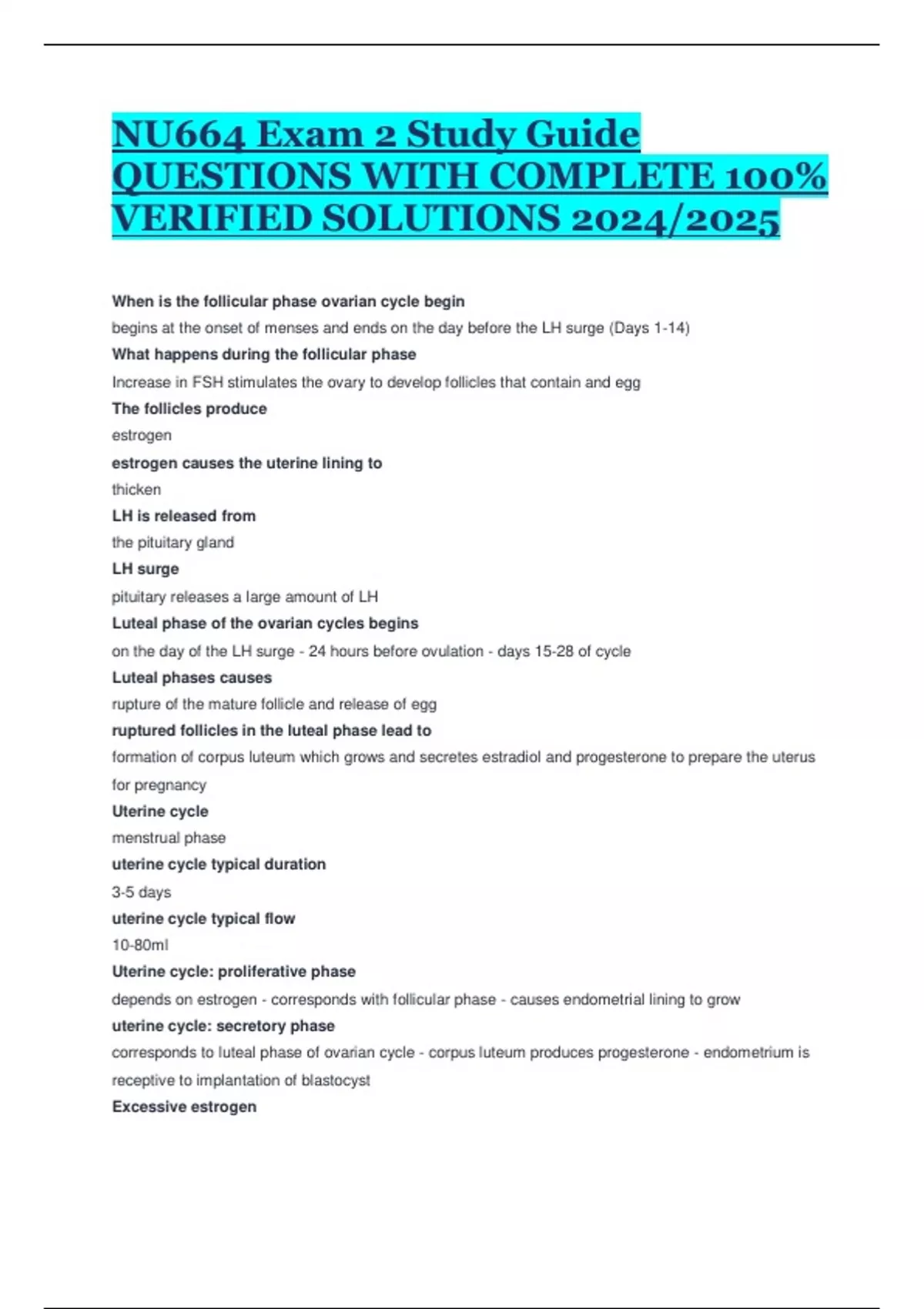 NU664 Exam 2 Study Guide QUESTIONS WITH COMPLETE 100% VERIFIED SOLUTIONS 2024/2025