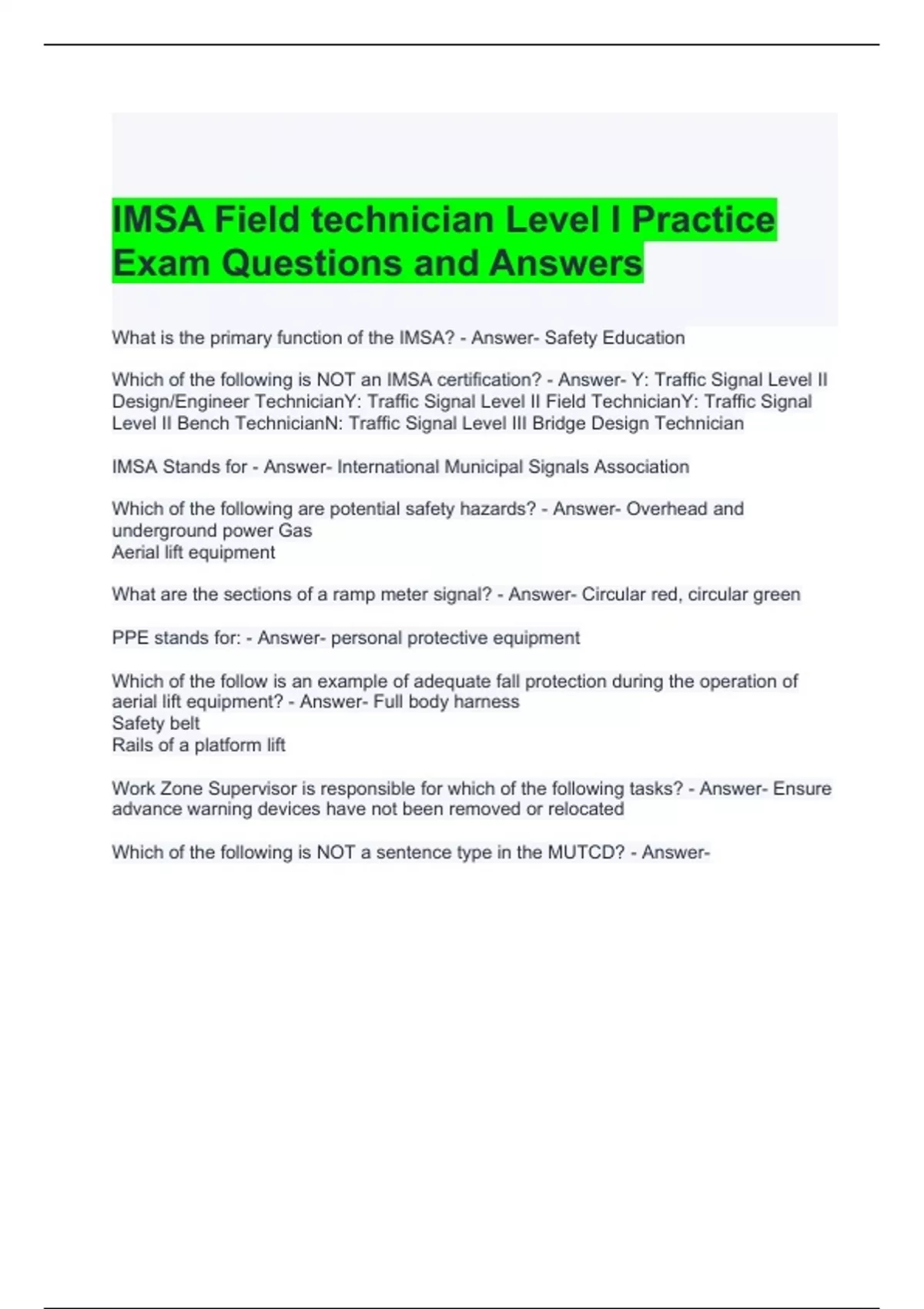 IMSA Field technician Level I Practice Exam Questions and Answers