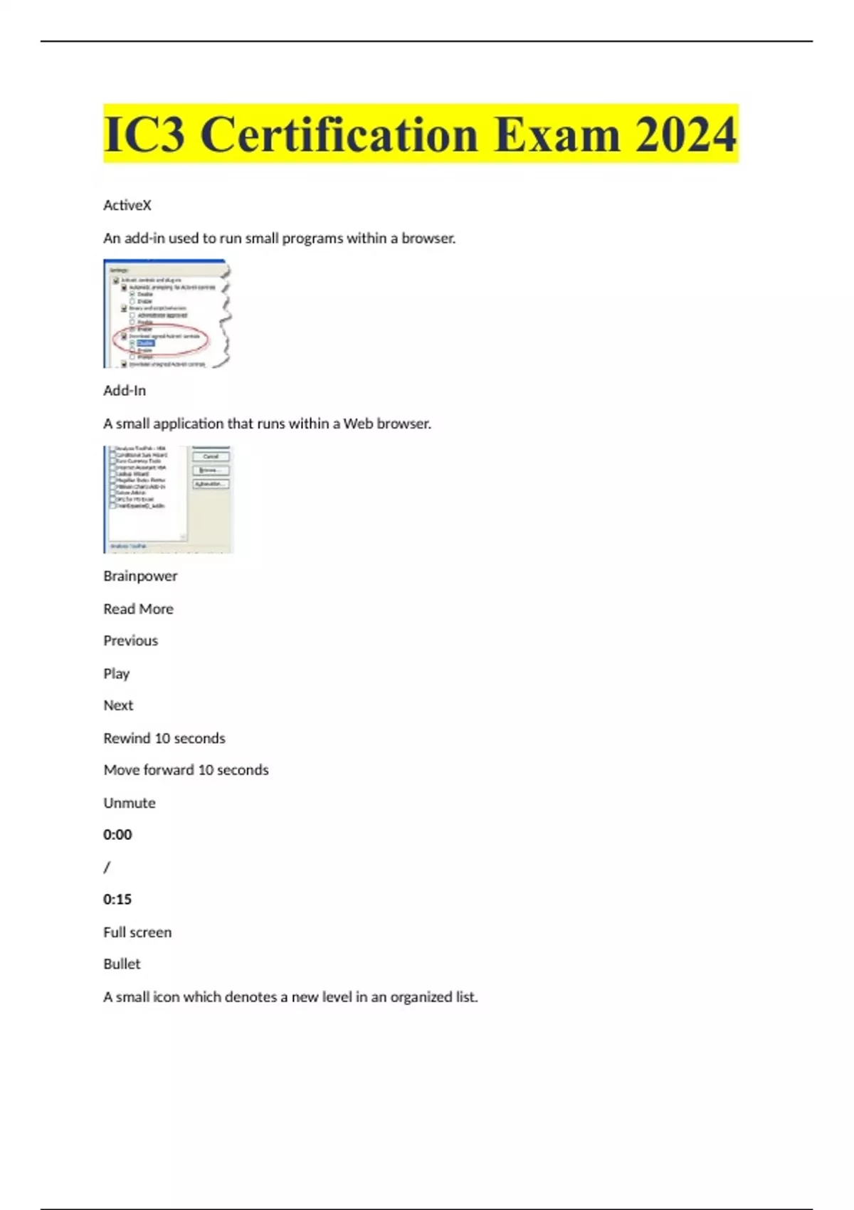 ic3 certification exam 2024 activex an add in use