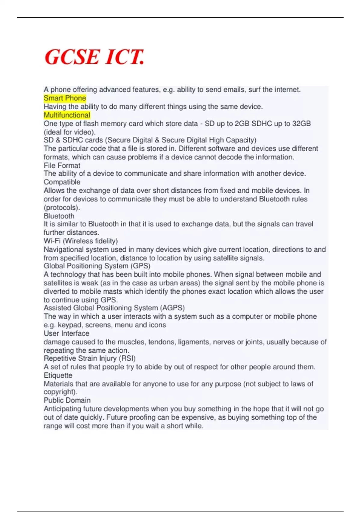 GCSE ICT. NOTABLE CLARITY.