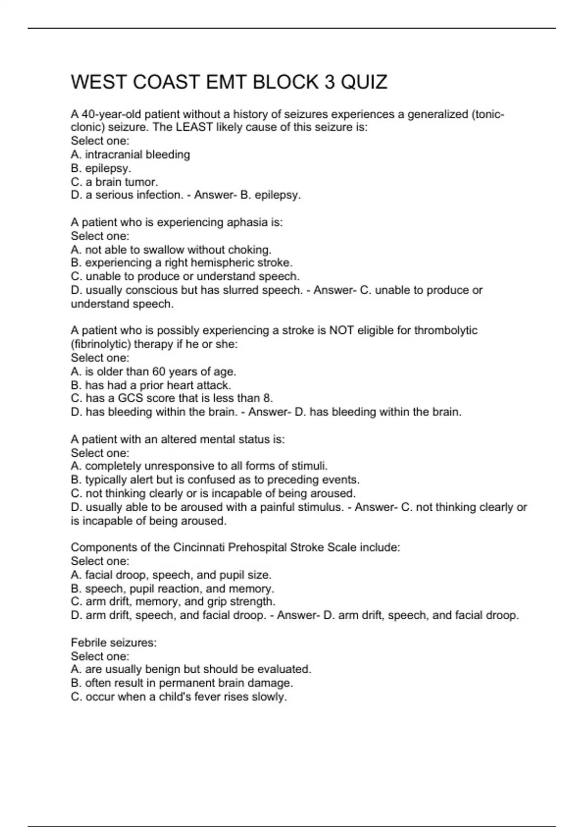 WEST COAST EMT BLOCK 3 QUIZ