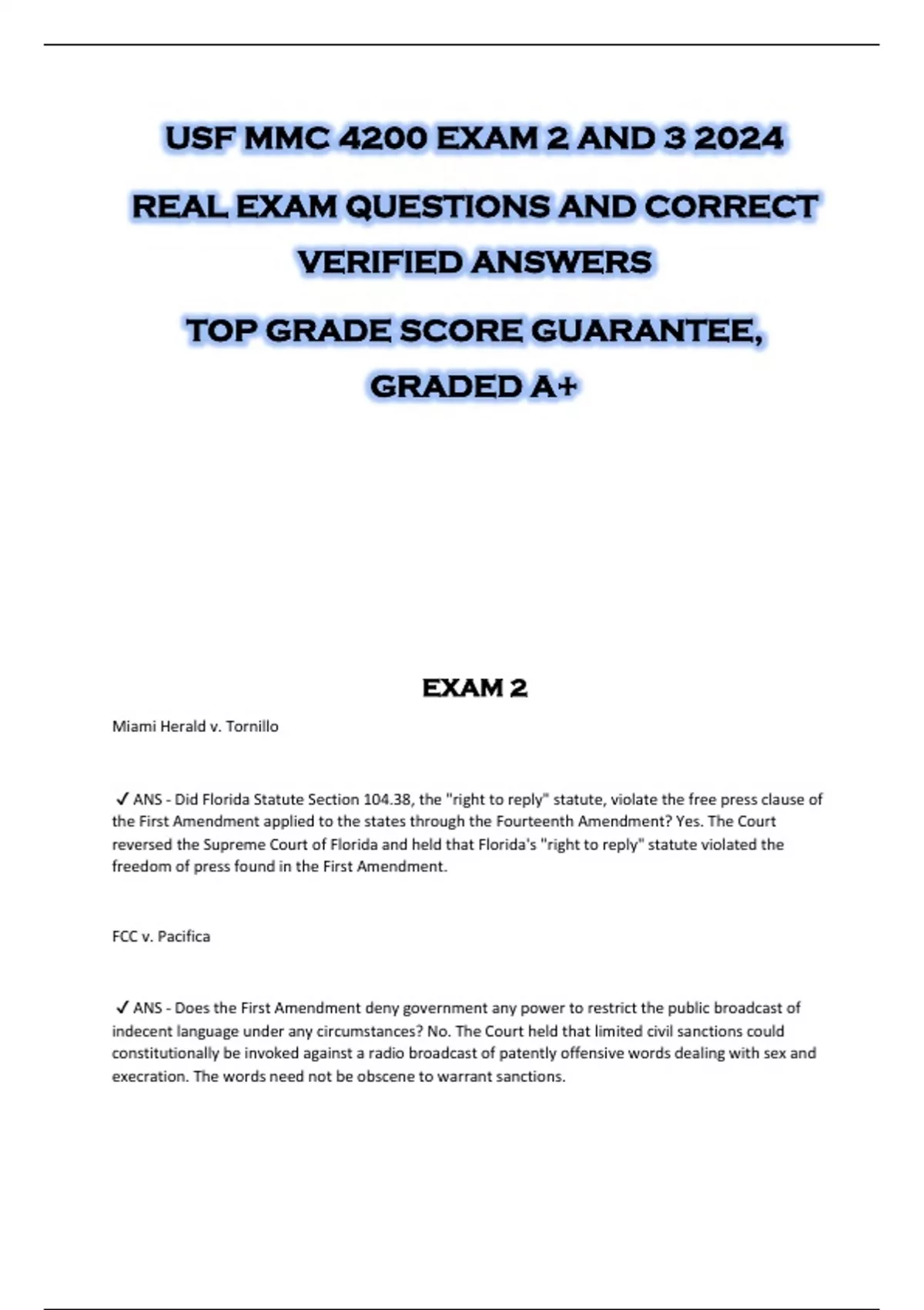 USF MMC 4200 EXAM 2 AND 3 2024 REAL EXAM QUESTIONS AND CORRECT VERIFIED ANSWERS TOP GRADE SCORE GUARANTEE, GRADED A+