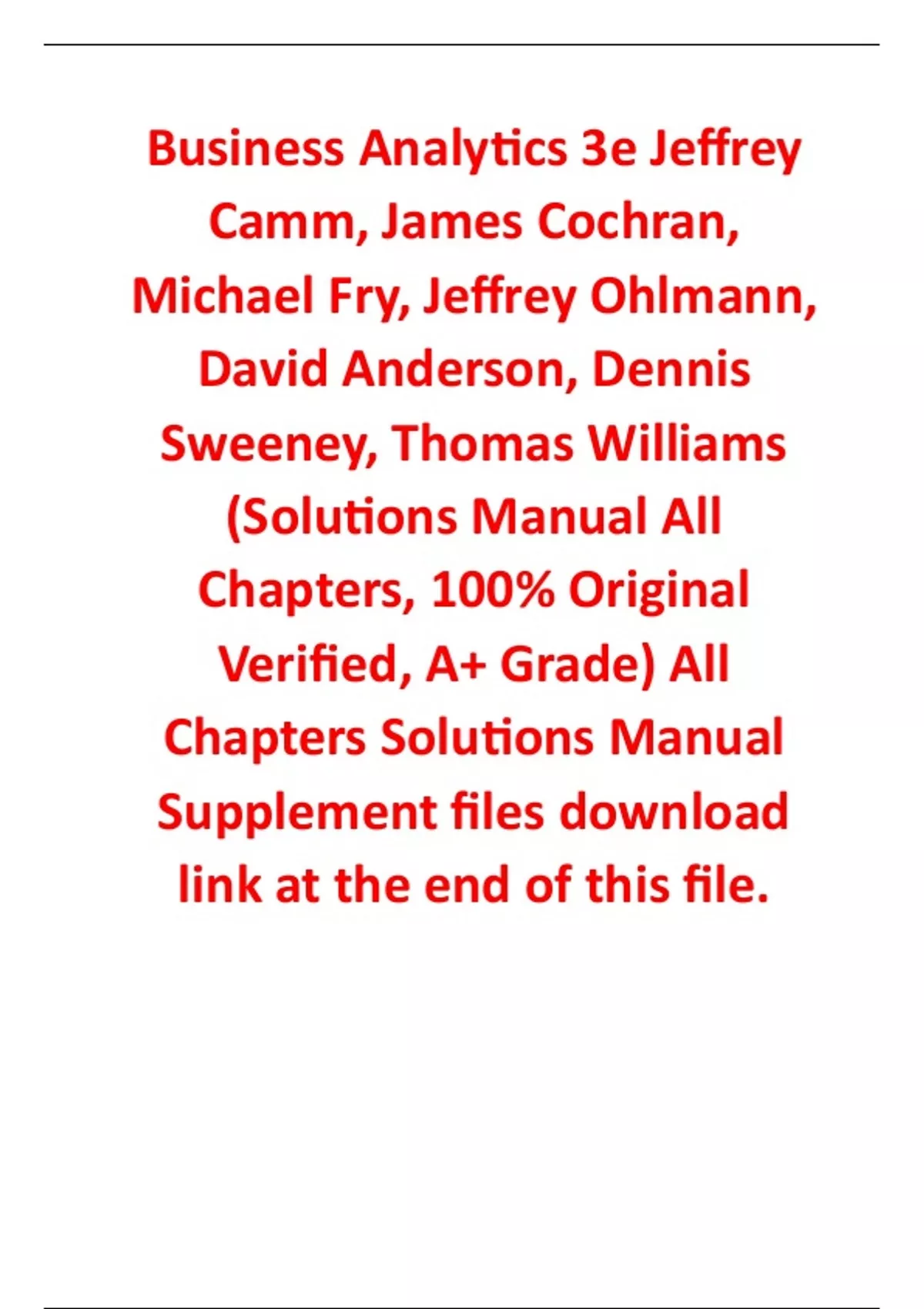 Solutions Manual for Business Analytics 3rd Edition By Jeffrey Camm, James Cochran, Michael Fry, Jeffrey Ohlmann, David Anderson, Dennis Sweeney, Thomas Williams (All Chapters, 100% Original Verified, A+ Grade) Solutions Manual for Business Analytics 3e By Jeffrey Camm, James Cochran, Michael Fry, Jeffrey Ohlmann, David Anderson, Dennis Sweeney, Thomas Williams (All Chapters, 100% Original Verified, A+ Grade)