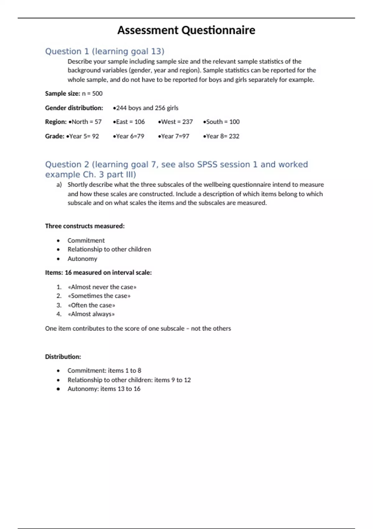 a) Shortly describe what the three subscales of the wellbeing questionnaire intend to measure