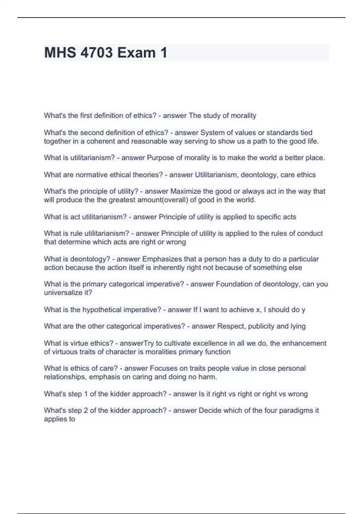 Exam of 3 pages for the course MHS at MHS (MHS 4703 Exam 1)