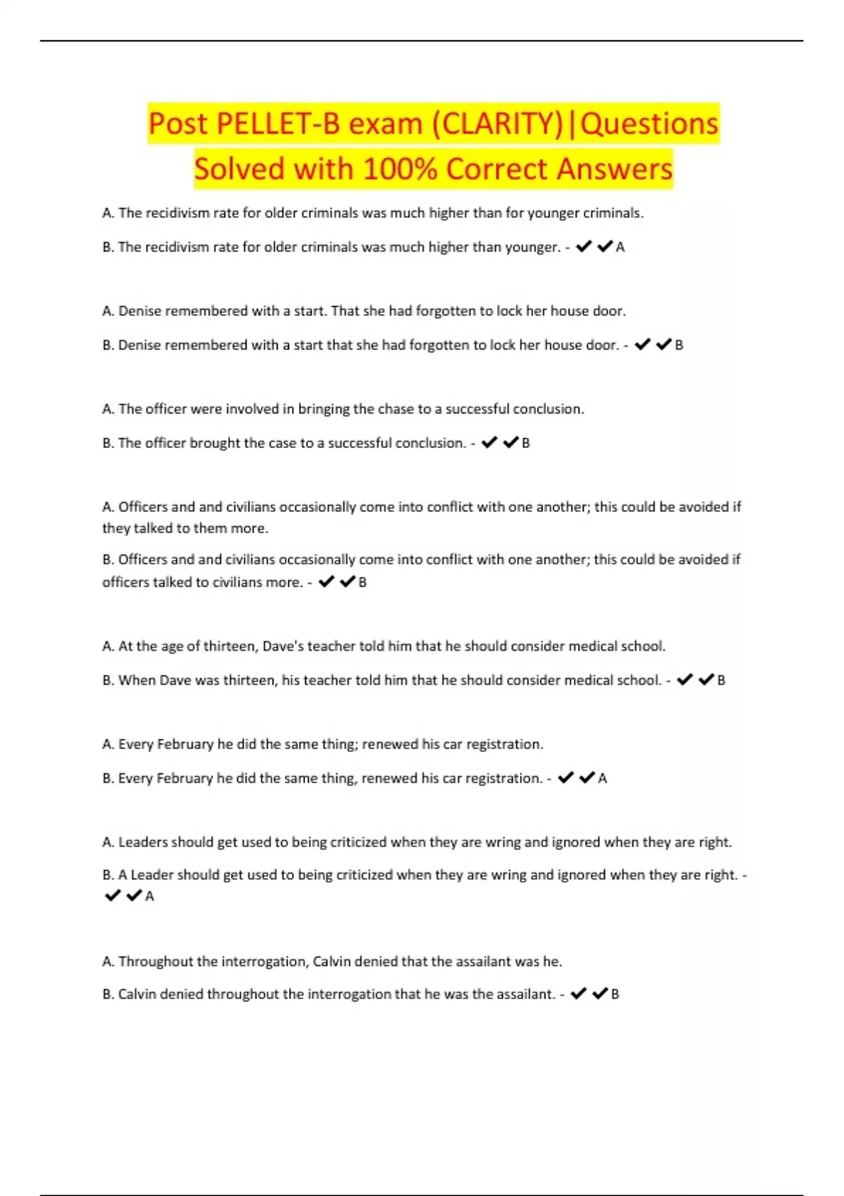 Post PELLET-B exam (CLARITY)|Questions Solved with 100% Correct Answers
