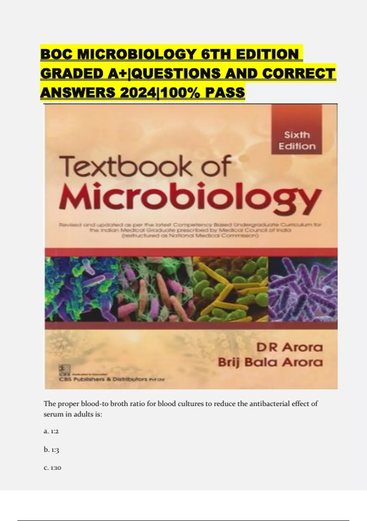 BOC MICROBIOLOGY 6TH EDITION GRADED A+|QUESTIONS AND CORRECT ANSWERS 2024|100% PASS