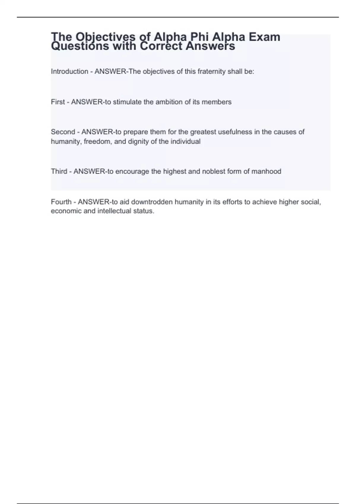 The Objectives of Alpha Phi Alpha Exam Questions with Correct Answers