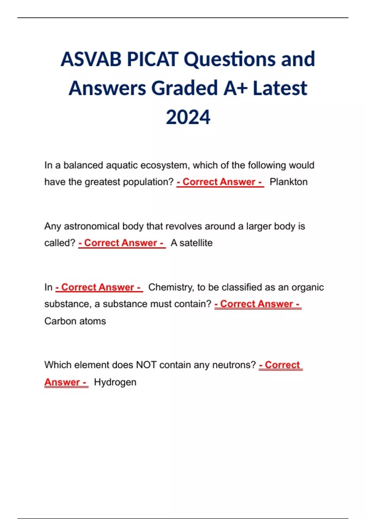 ASVAB PICAT Questions and Answers Graded A+ Latest 2024 ASVAB PICAT Questions and Answers Graded A+ Latest 2024 ASVAB PICAT Questions and Answers Graded A+ Latest 2024