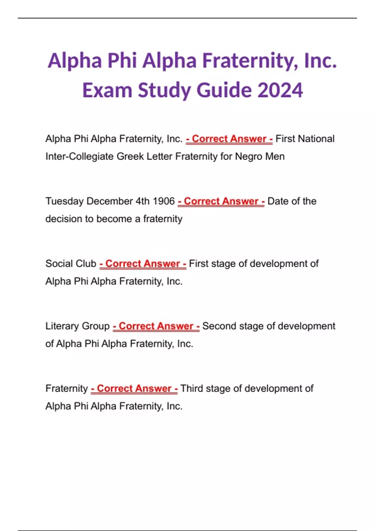 BUNDLE for Alpha Phi Alpha Fraternity Incorporated. Exam Guide Latest 2024