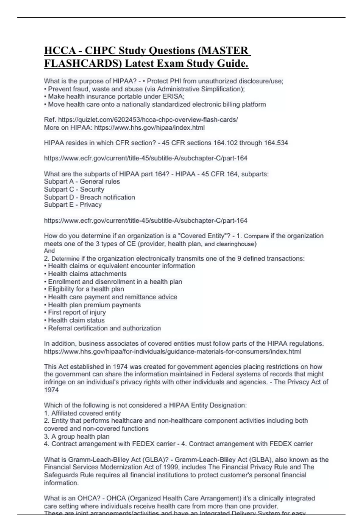 HCCA - CHPC Study Questions (MASTER FLASHCARDS) Latest Exam Study Guide