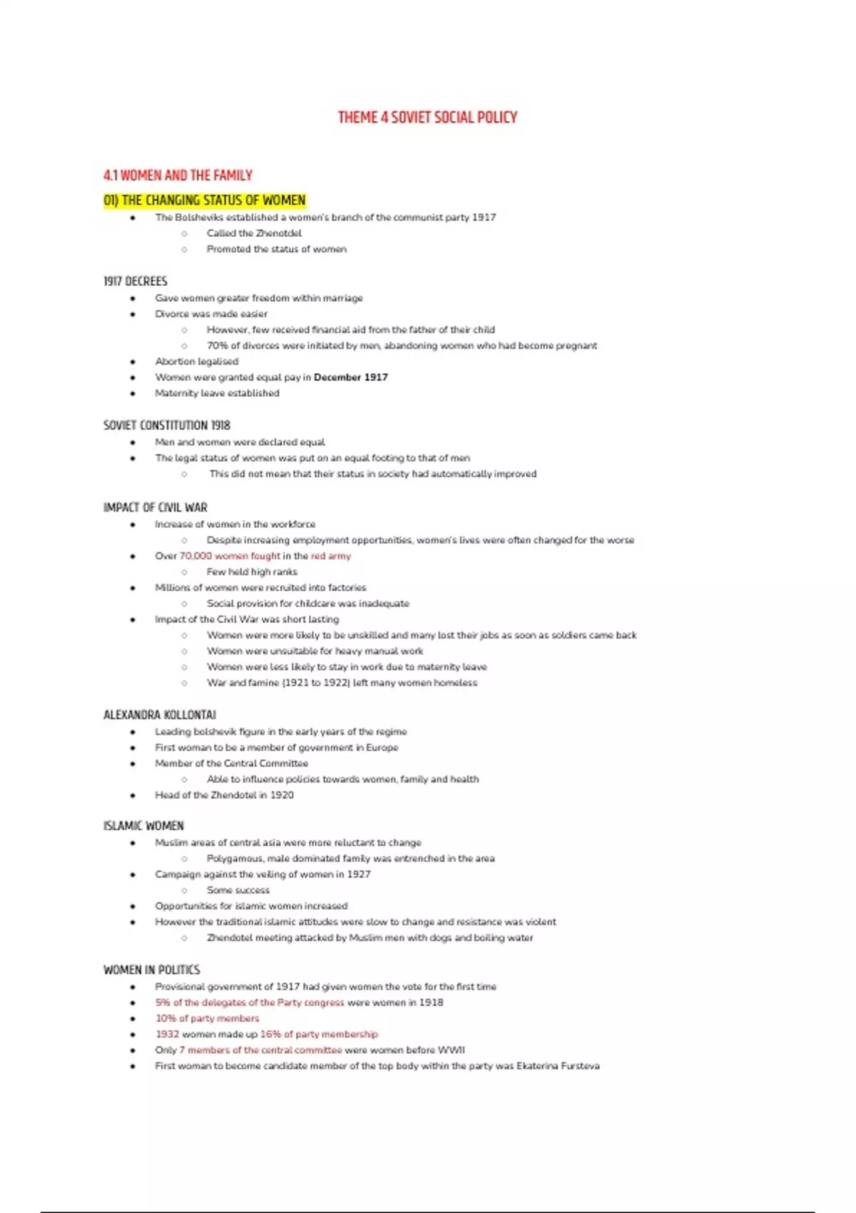 Summary A Level Notes on Soviet Social Policy