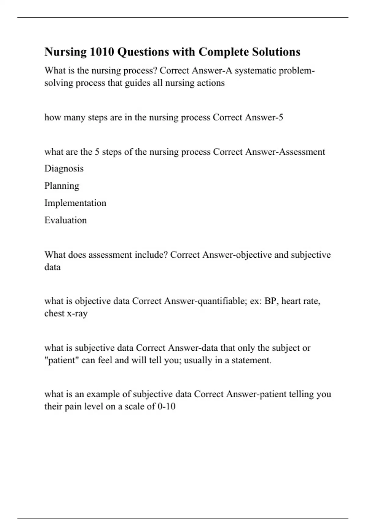 Nursing 1010 Questions with Complete Solutions.
