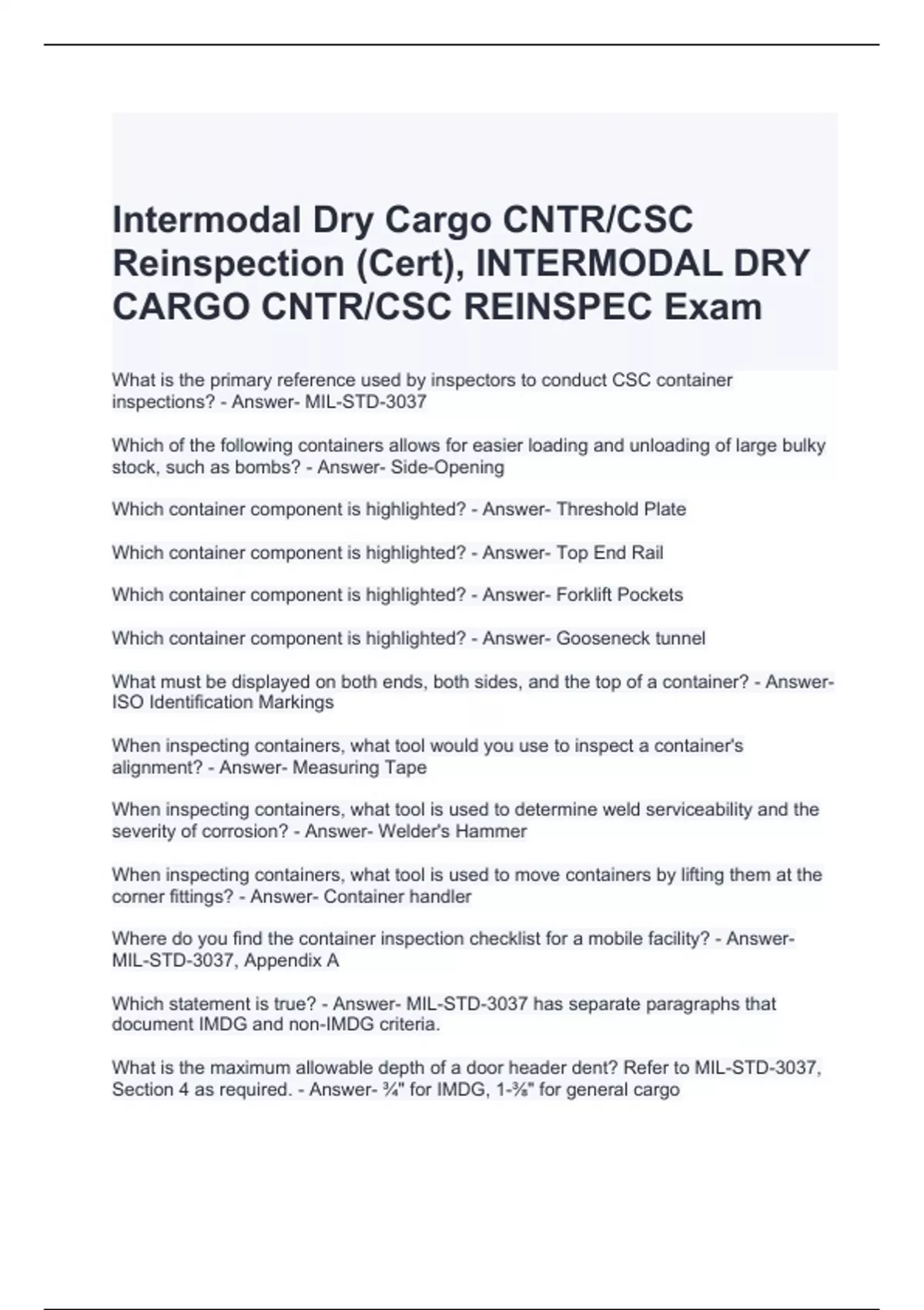 Intermodal Dry Cargo CNTR/CSC Reinspection (Cert), INTERMODAL DRY CARGO CNTR/CSC REINSPEC Exam