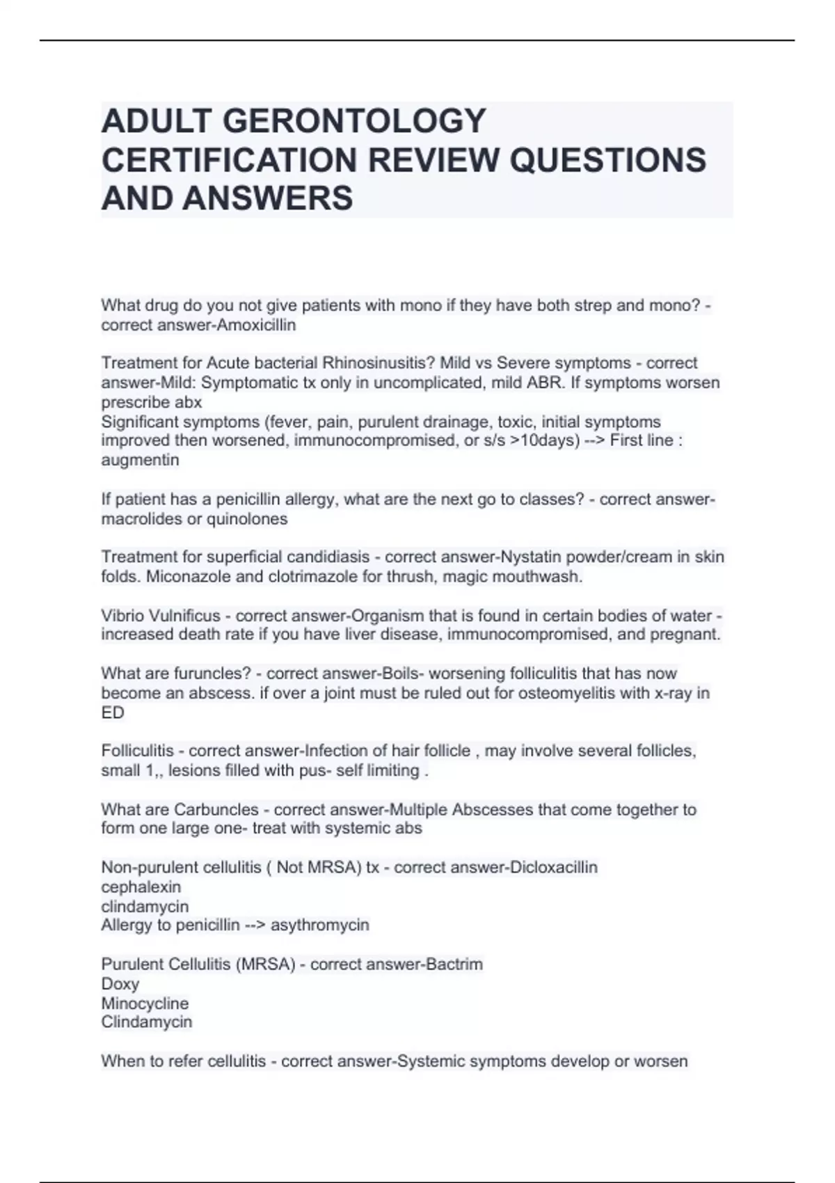 ADULT GERONTOLOGY CERTIFICATION REVIEW QUESTIONS AND ANSWERS