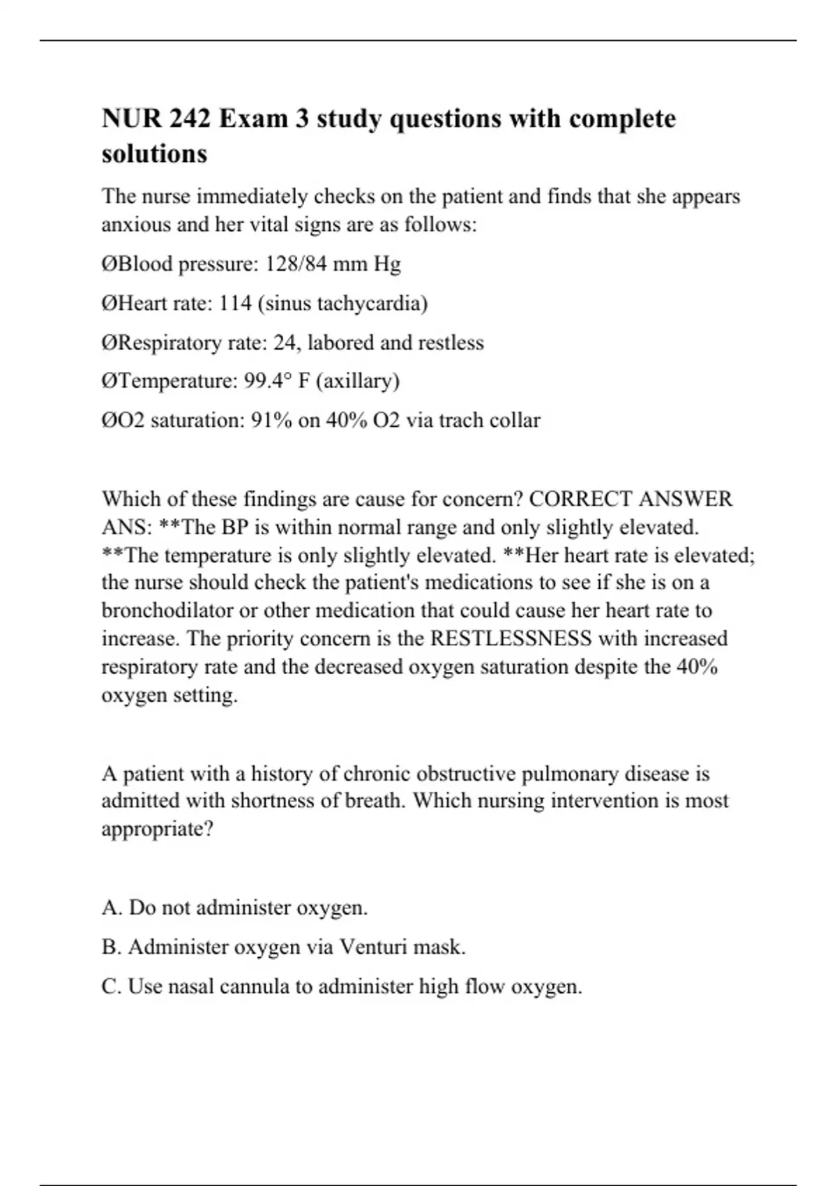nur 242 exam 3 study questions with complete solut