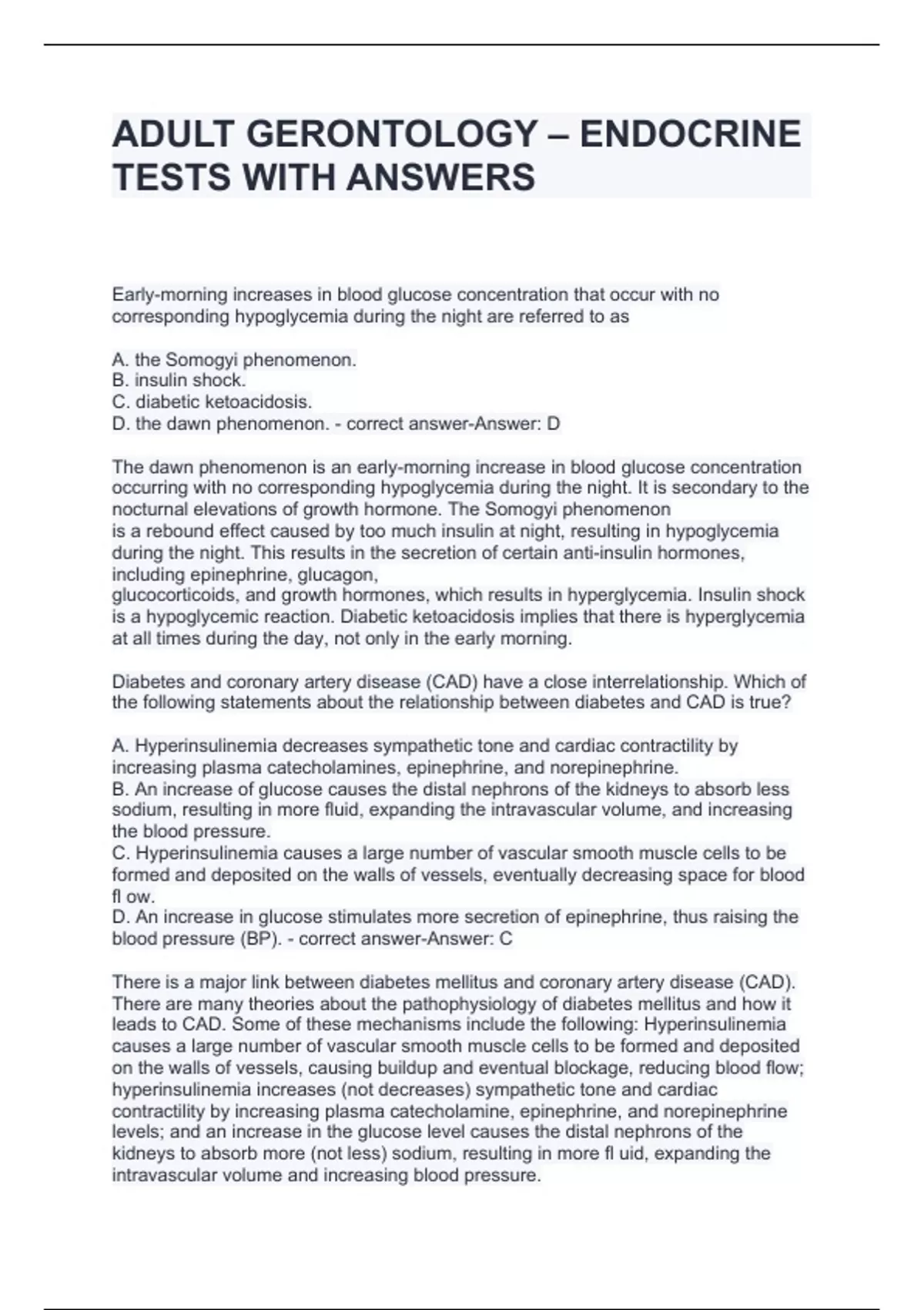ADULT GERONTOLOGY – ENDOCRINE TESTS WITH ANSWERS